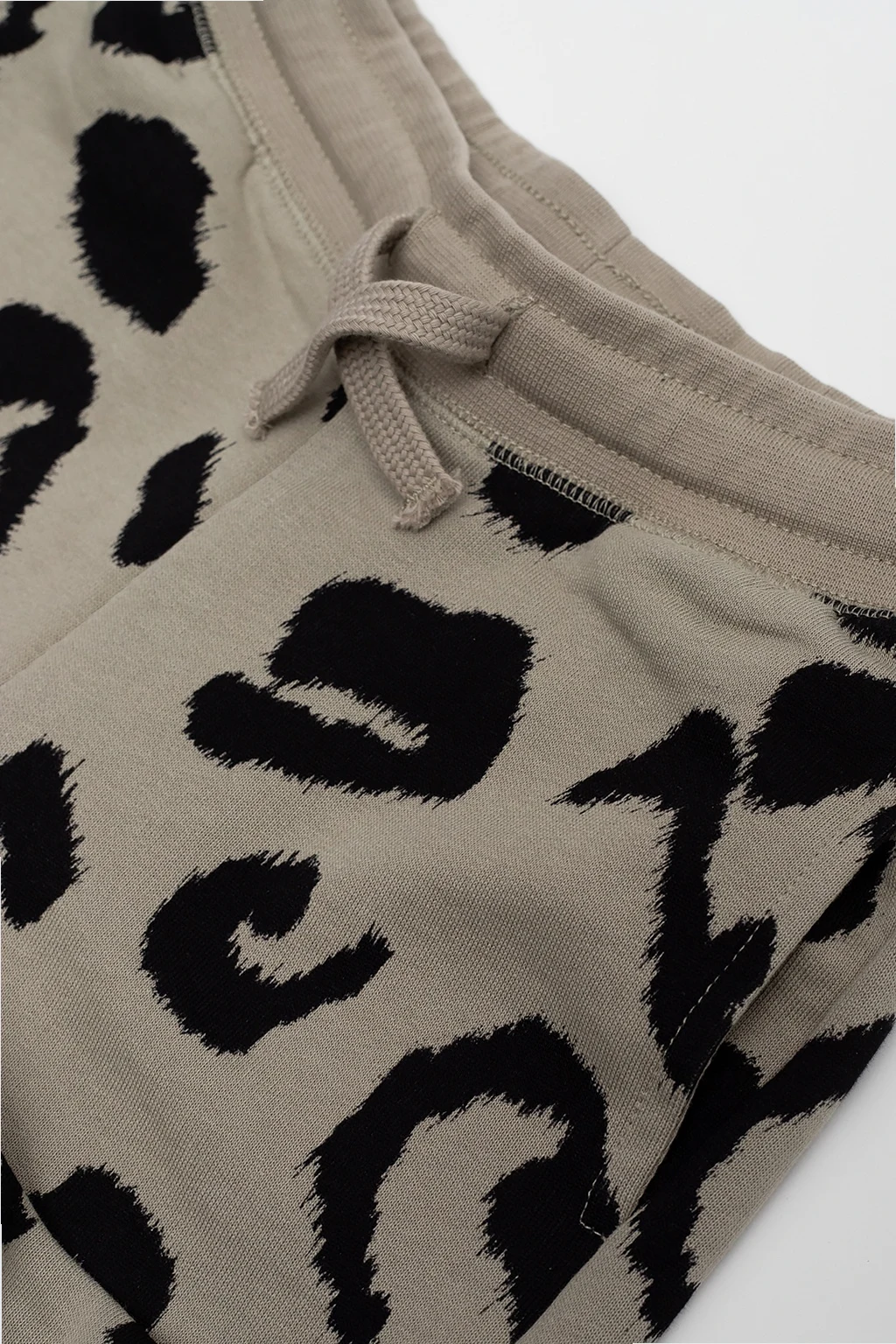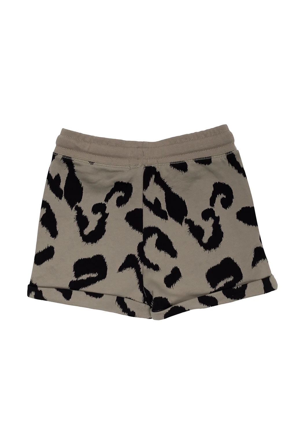 Szare szorty Stella McCartney Kids. Wykonane z bawełny. Ozdobione nadrukowanym wzorem w kolorze czarnym. W pasie wszyta guma ściągana trokami. Dwie wsuwane kieszenie. Krótkie, podwijane nogawki.