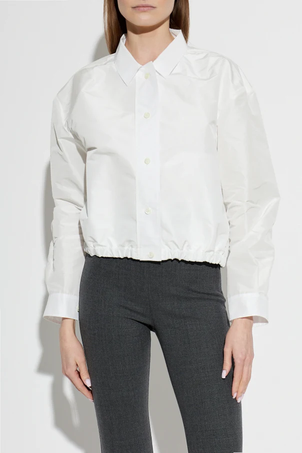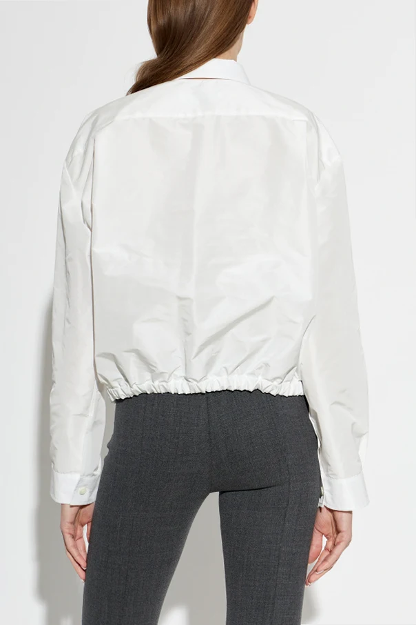 Precyzyjnie wykonana z wysokiej klasy, białego, gładkiego i lekko połyskującego materiału, kurtka gwarantuje niespotykaną lekkość i komfort noszenia, zachowując jednocześnie ekskluzywny wyraz. Brak zbędnych ozdób i dekoracji wydobywa szlachetność tkaniny oraz czystość linii. Klasyczny szeroki kołnierz koszulowy i mankiety zapinane na guziki uwypuklają wyrafinowany minimalizm, będący znakiem rozpoznawczym marki.