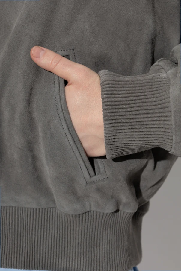 Zamszowa kurtka typu ‘Bomber’ autorstwa wybitnego projektanta Ami Alexandre Mattiussi zachwyca subtelną elegancją i nowoczesnym spojrzeniem na klasykę. Kurtka w odcieniu szarym , o lekko oversizowym fasonie z rozbudowaną linią ramion, przyciąga uwagę czystością formy i niewymuszoną paryską finezją.
