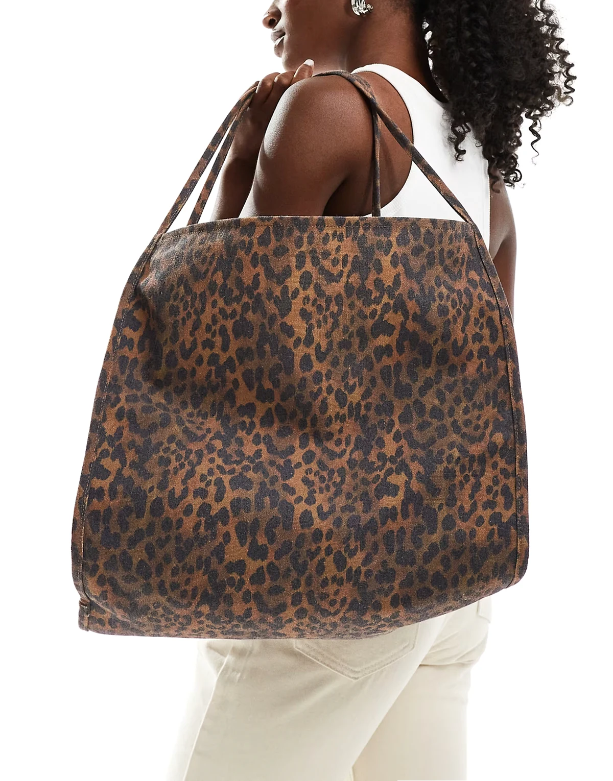 – Brązowa płócienna torba typu tote w panterkę