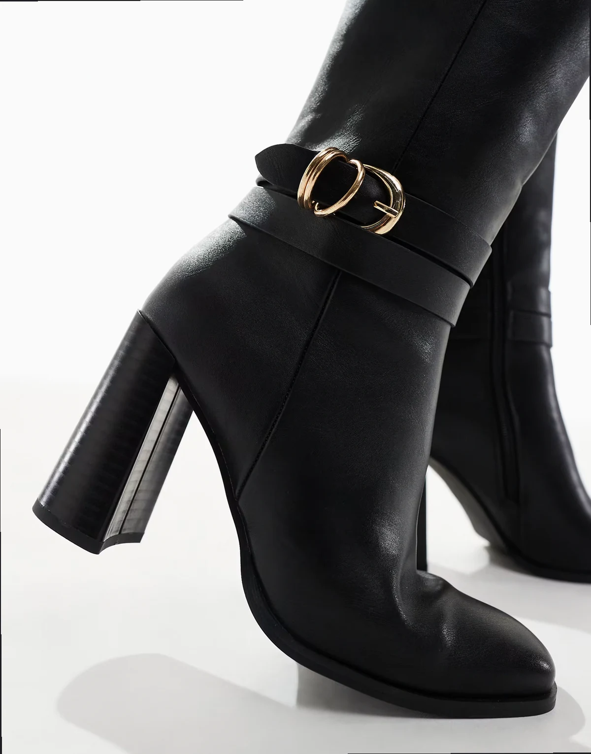 – Riley – Czarne buty do kolan z klamrą