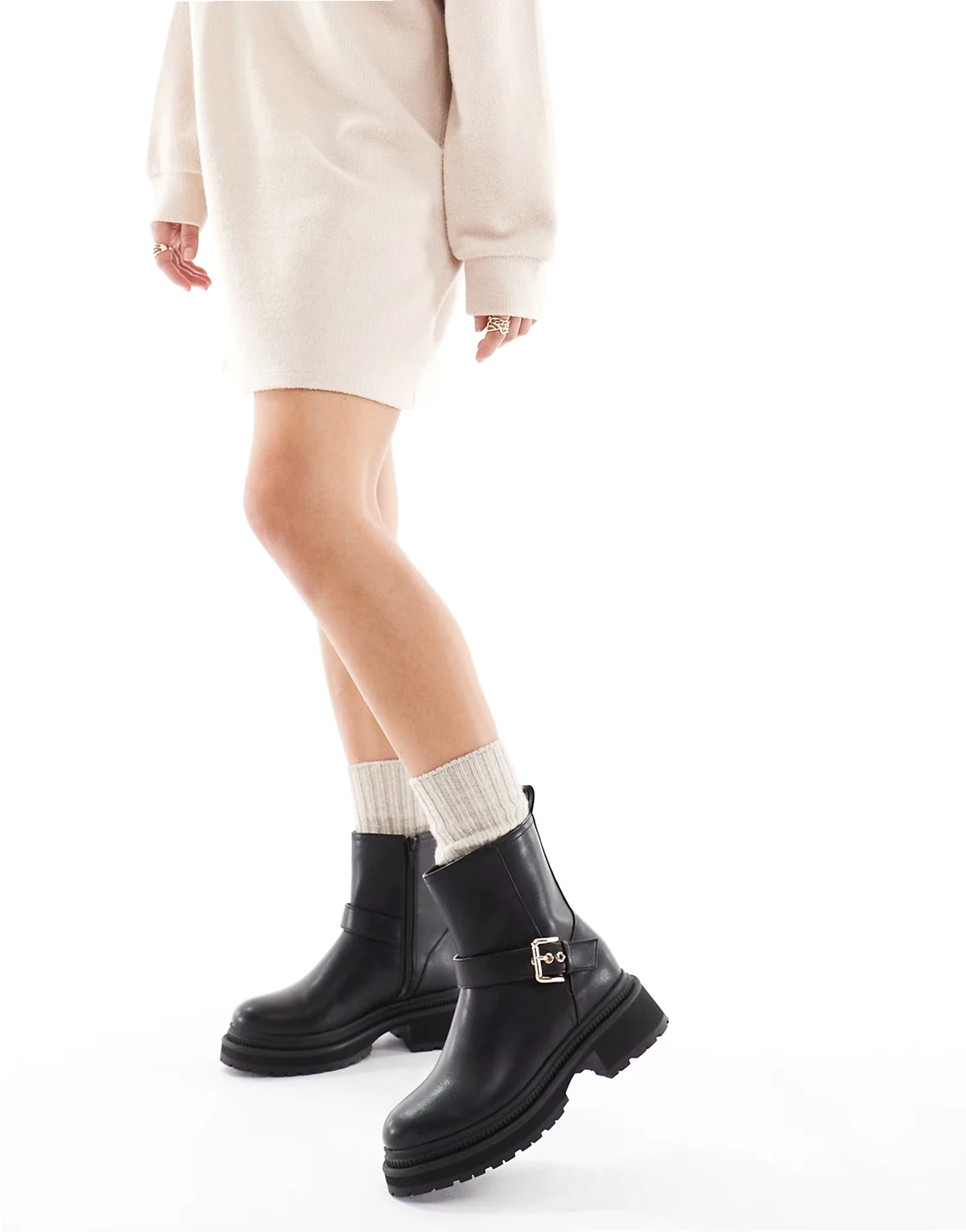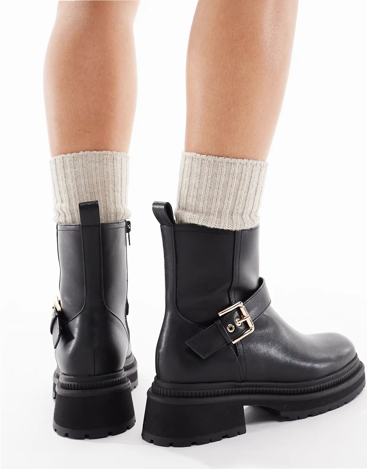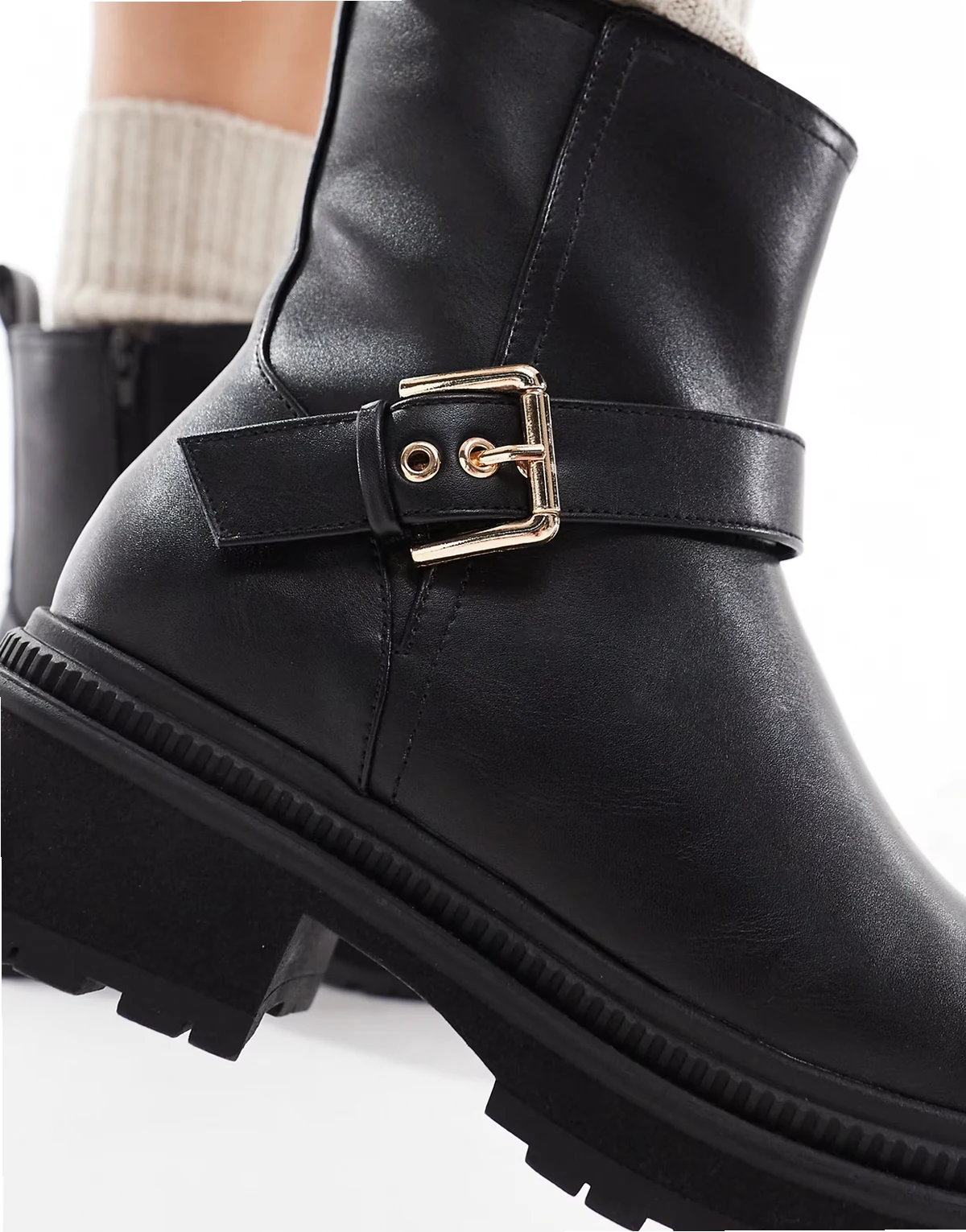 – Emma – Czarne botki na grubej podeszwie z ozdobnymi sprzączkami