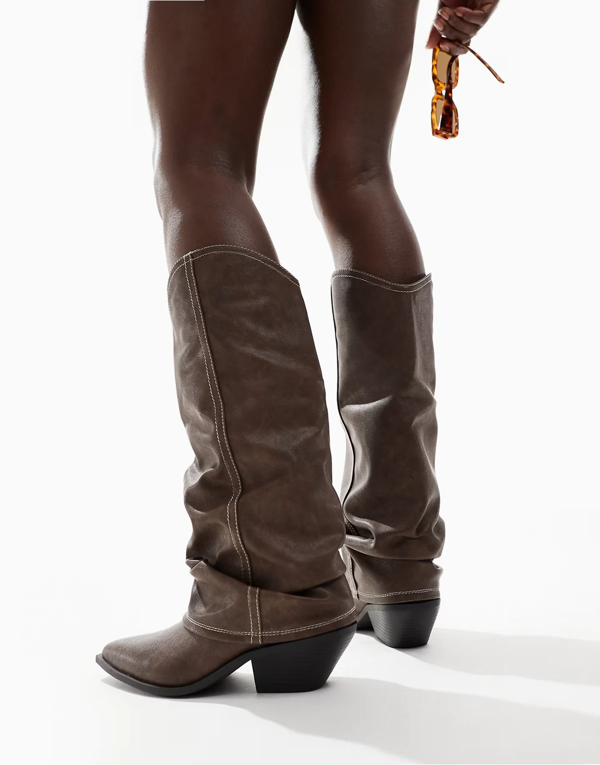 ASOS DESIGN – Czarne kowbojskie sztyblety z imitacji skóry na obcasach kubańskich ze srebrnymi noskami $84.99 ★★★★★ (1)