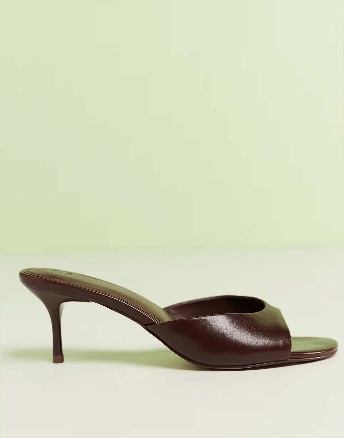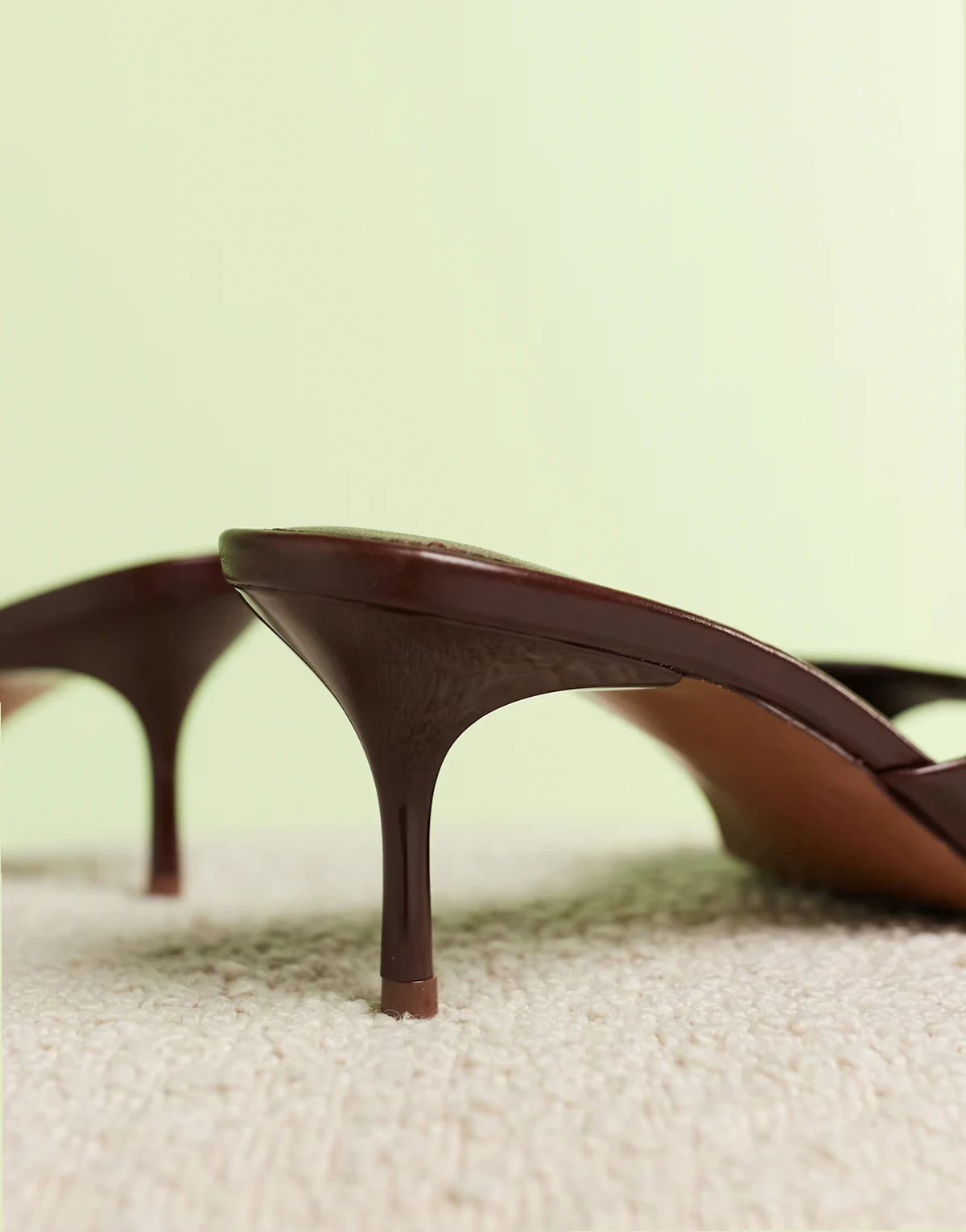– Hush – Czekoladowe skórzane mule na średnim obcasie
