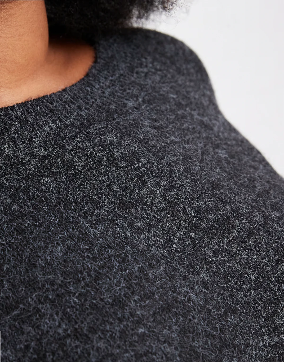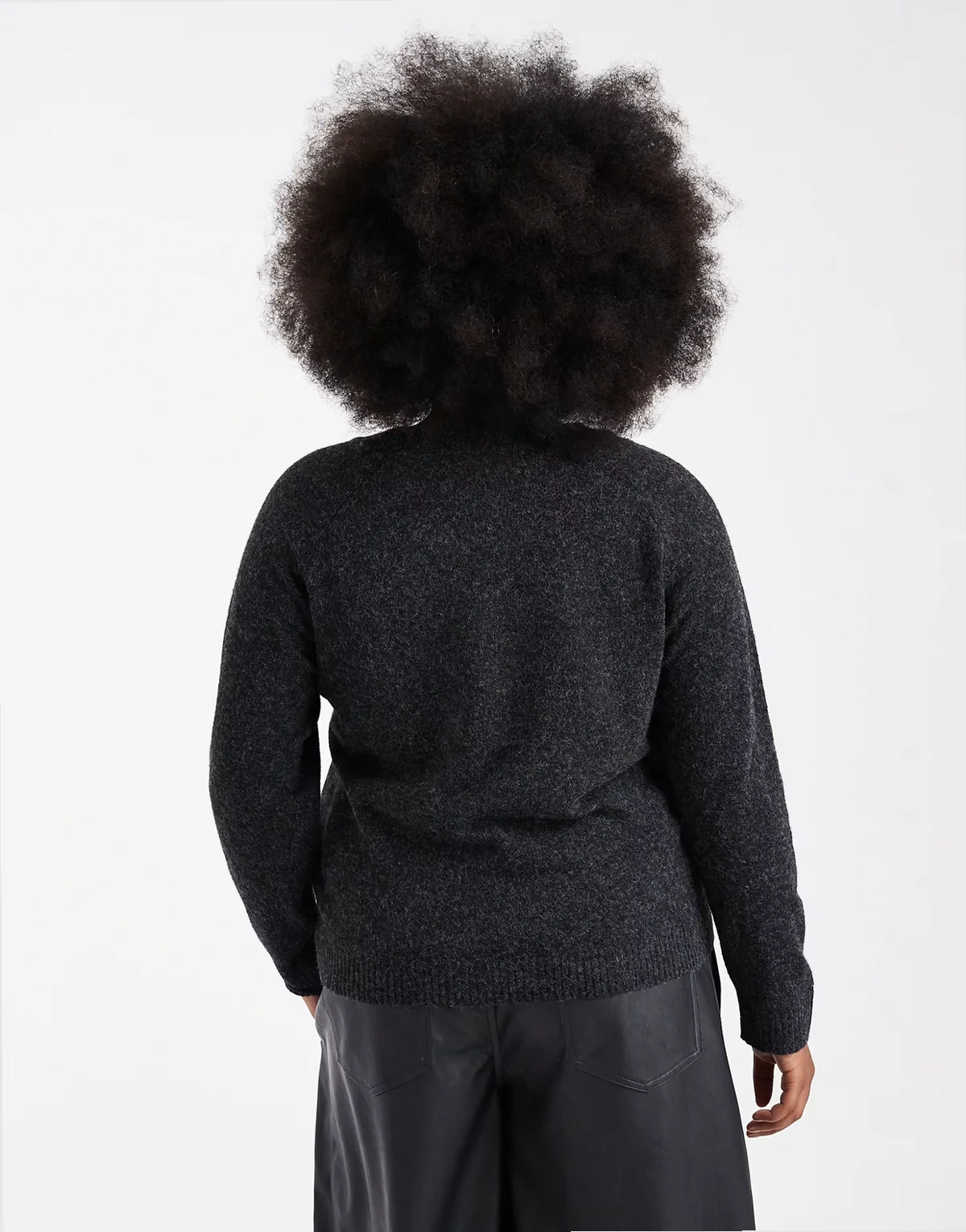 – Czarny sweter z miękkiej dzianiny z okrągłym dekoltem