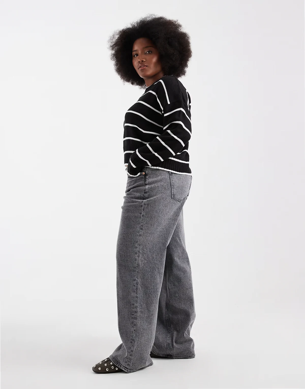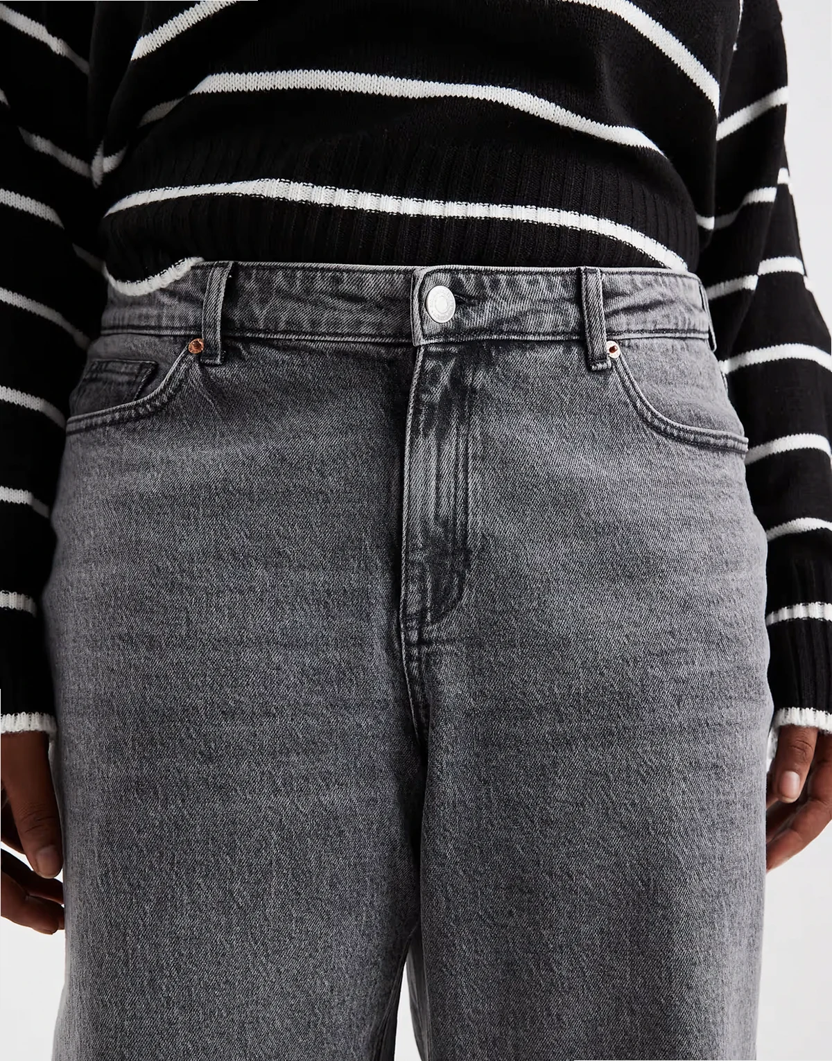 – Tessa – Szare jeansy z szerokimi nogawkami i podwyższonym stanem