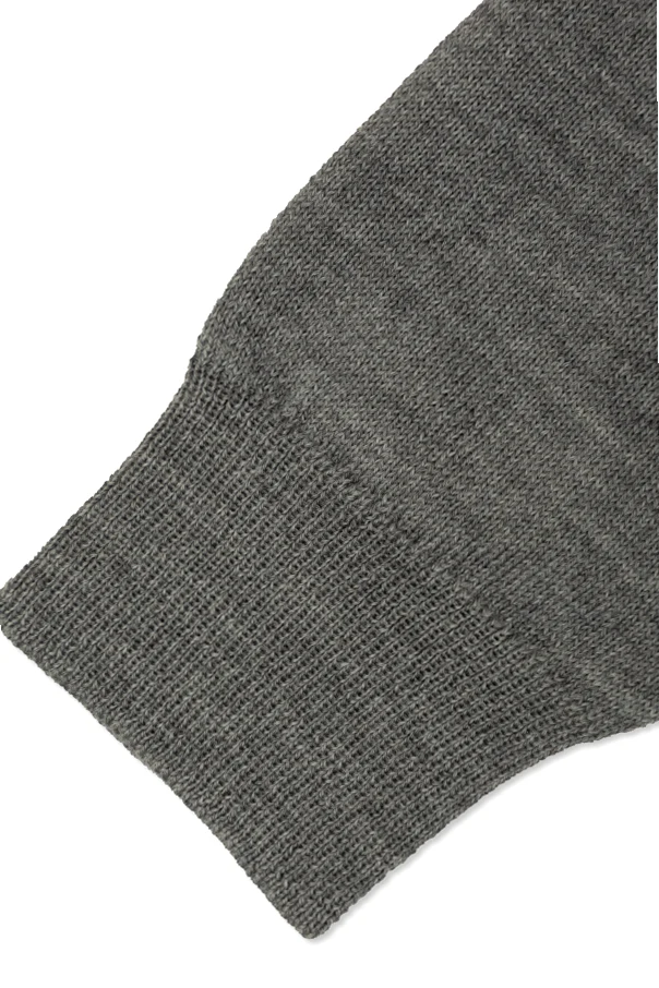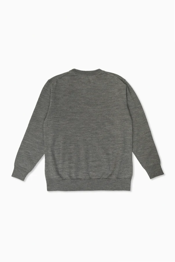 Wełniany sweter z wyszytym logo zachwyca wyrafinowaną prostotą i ponadczasowym eleganckim stylem. Starannie zaprojektowany, posiada klasyczny krój z pełnymi rękawami oraz okrągłym dekoltem, a szerokie, prążkowane ściągacze przy mankietach i u dołu zapewniają wyjątkowy komfort i idealne dopasowanie.