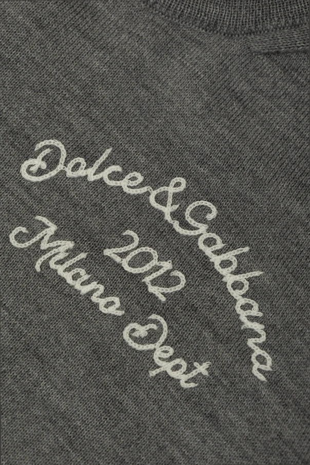 Sweter wyróżnia się subtelnym, a zarazem wyrazistym wyszytym logo z napisem „Dolce & Gabbana 2012 Milano Dept”, co podkreśla ekskluzywny charakter produktu oraz jego designerskie pochodzenie.