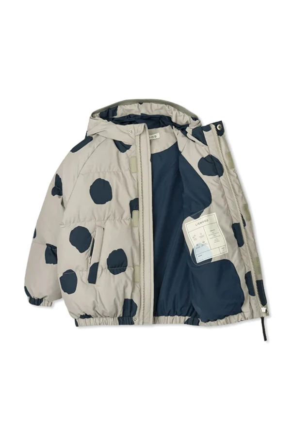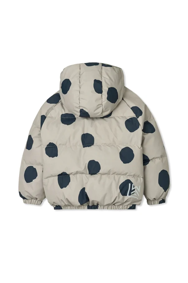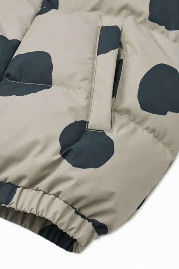 Kurtka puchowa Adelina marki Liewood to kwintesencja nowoczesnej elegancji w dziecięcym wydaniu. Łączy w sobie luźny, wygodny krój z wyrazistym charakterem – całość ozdabia dynamiczny, kontrastujący wzór dużych plam w odcieniach granatu i grafitu.