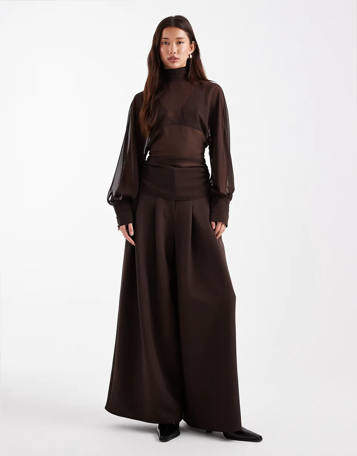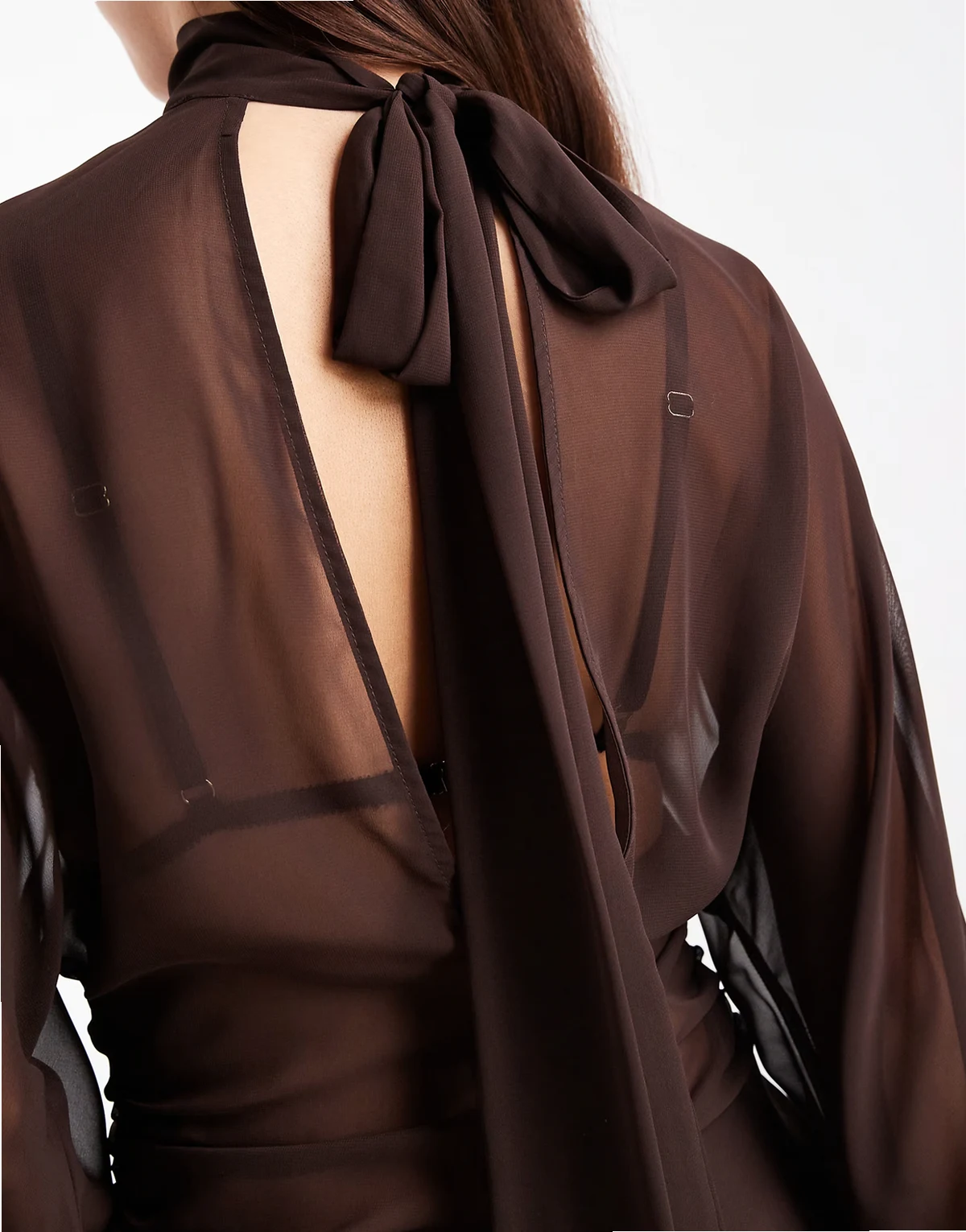 – Bluzka z rękawami nietoperzowymi i zabudowanym dekoltem w kolorze czekoladowym