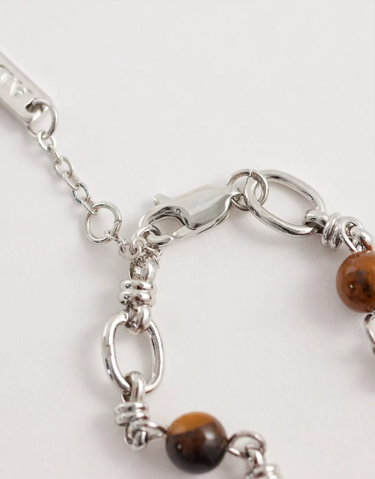 – Bransoletka łańcuszkowa w srebrnym kolorze z kamieniem półszlachetnym tygrysim okiem