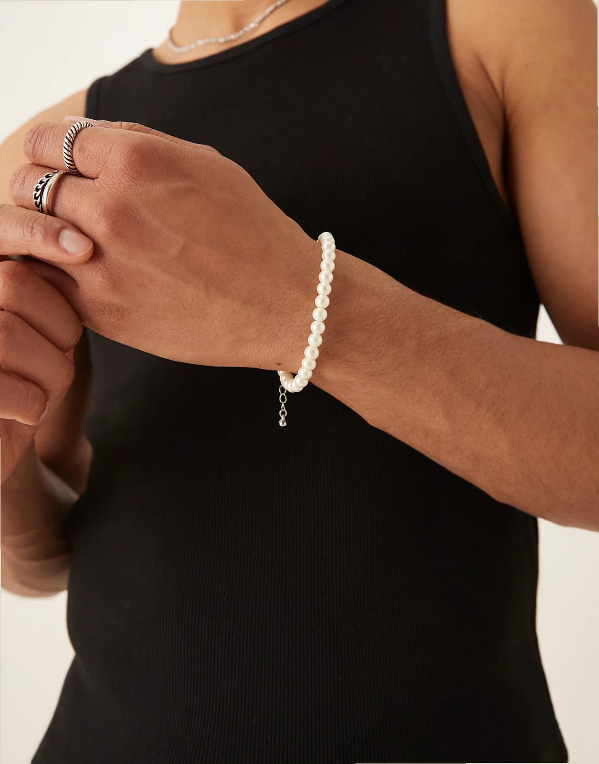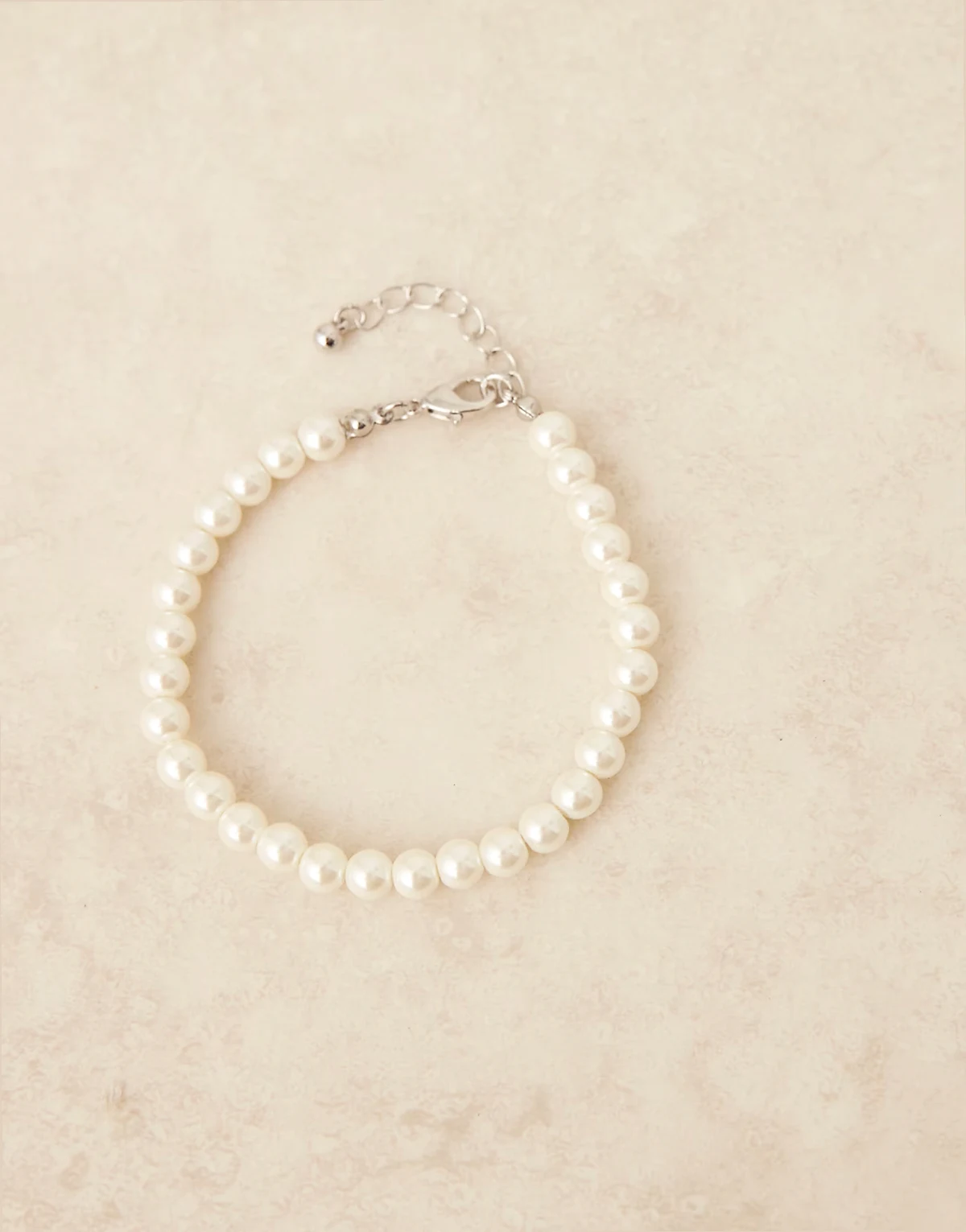 – Bransoletka z białych 6 mm sztucznych pereł