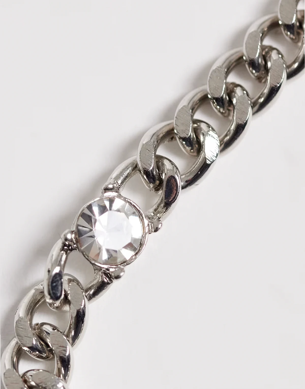 – Bransoletka łańcuszkowa w kolorze srebra z kryształkami