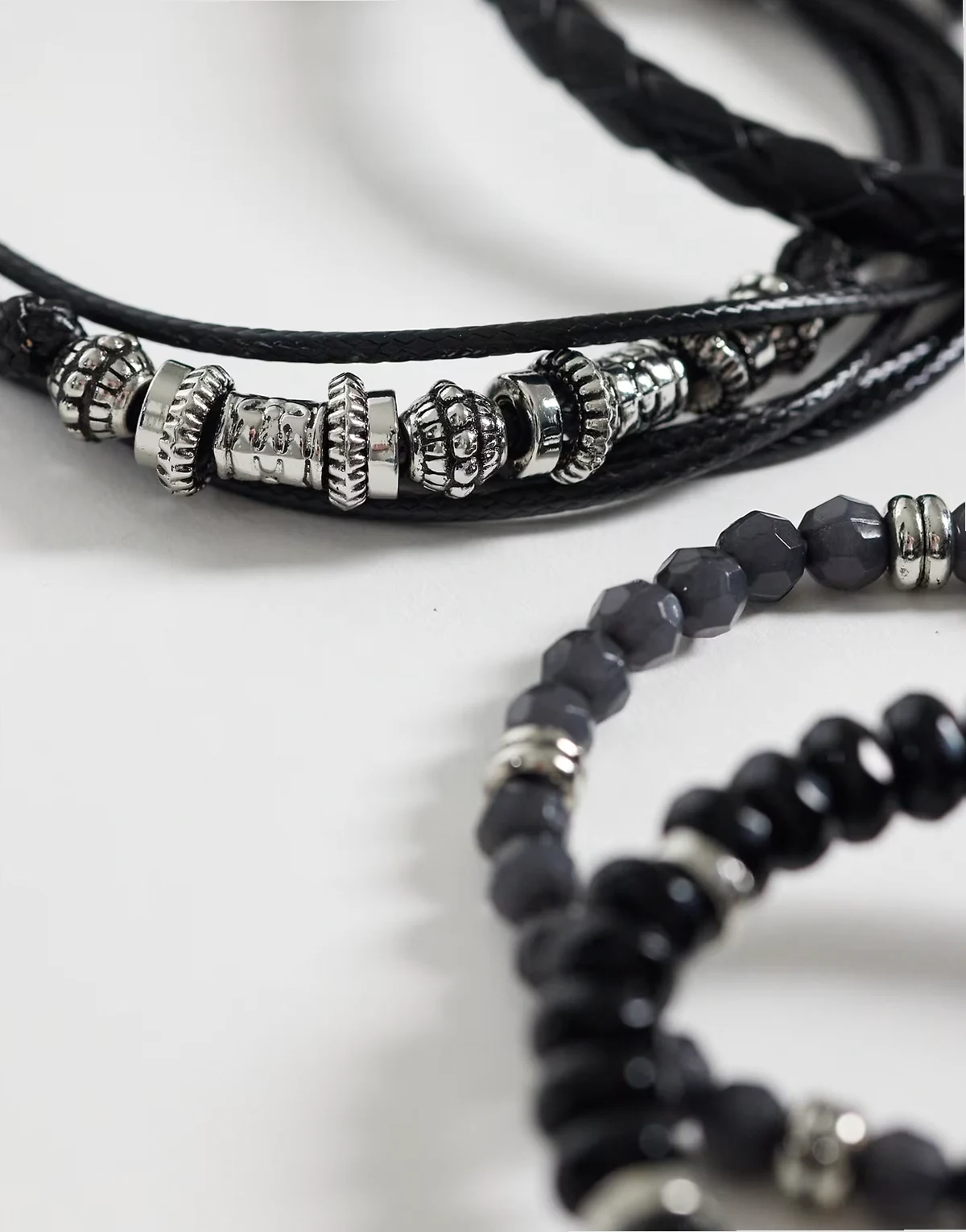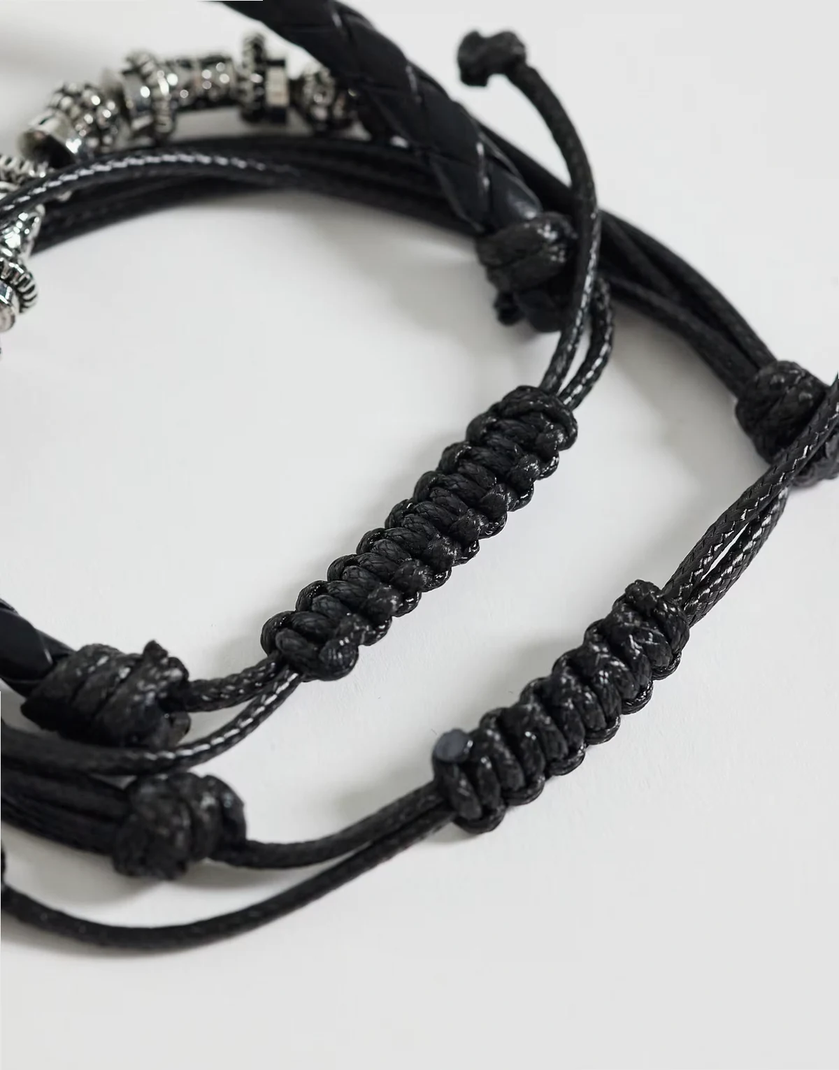 4. – Zestaw 5 czarnych bransoletek ze sznurka i fasetowanych koralików