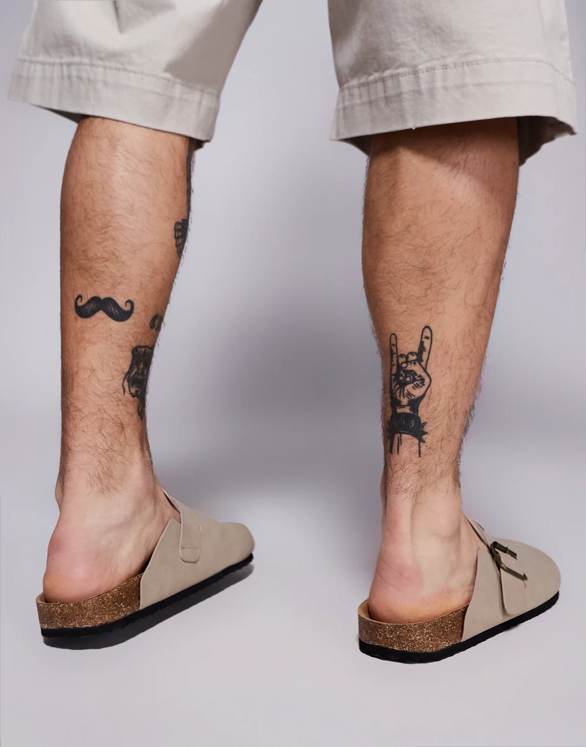 – Kamiennobeżowe zamszowe sandały z dwoma paskami