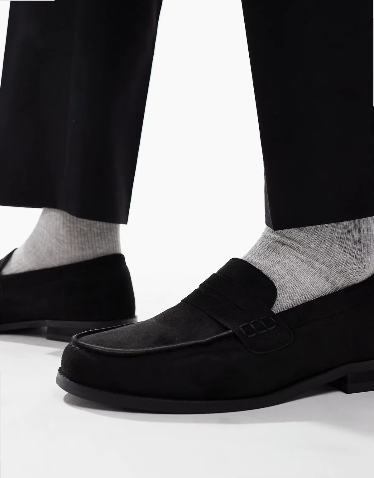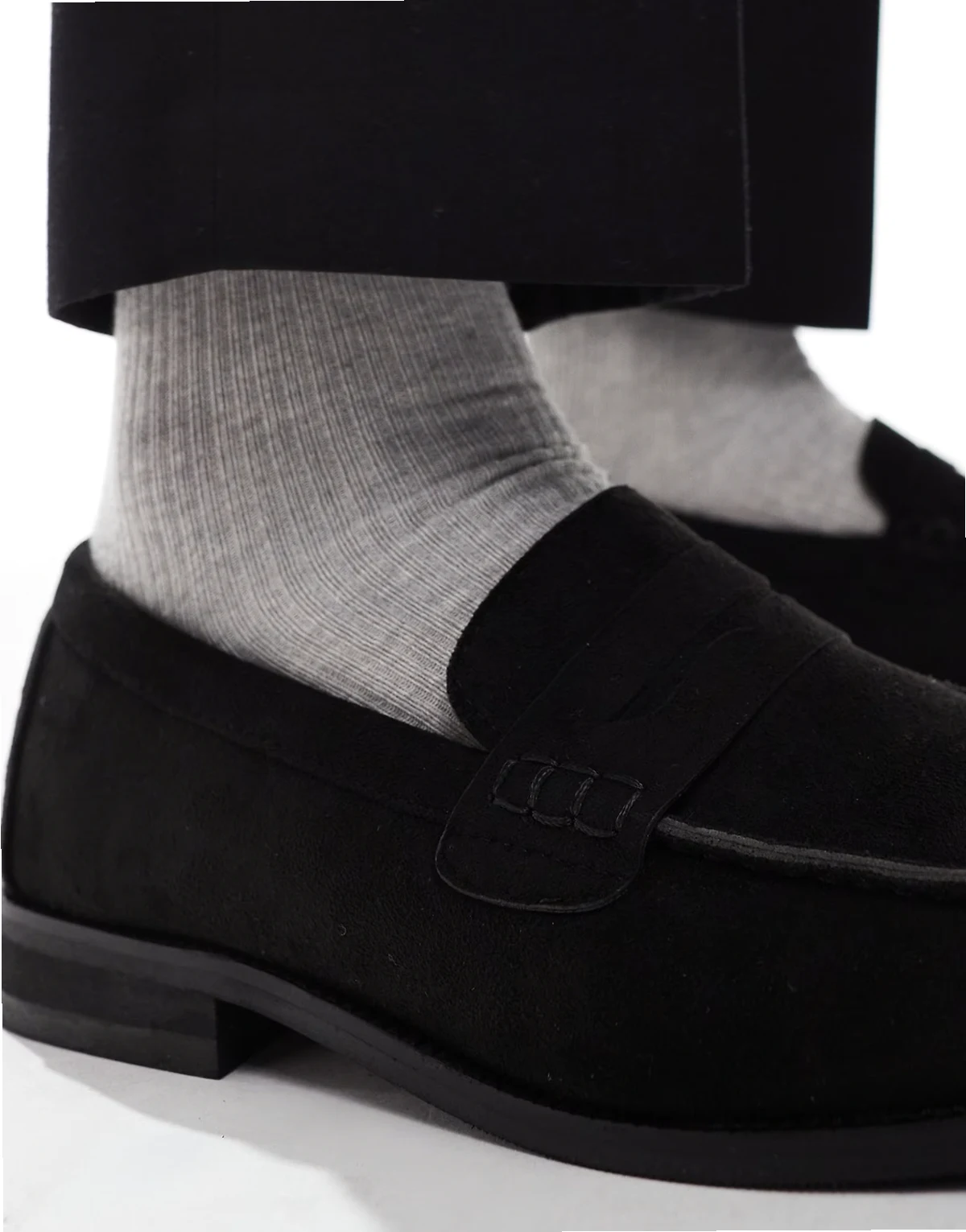 – Hero – Czarne loafersy z imitacji zamszu z marszczeniem