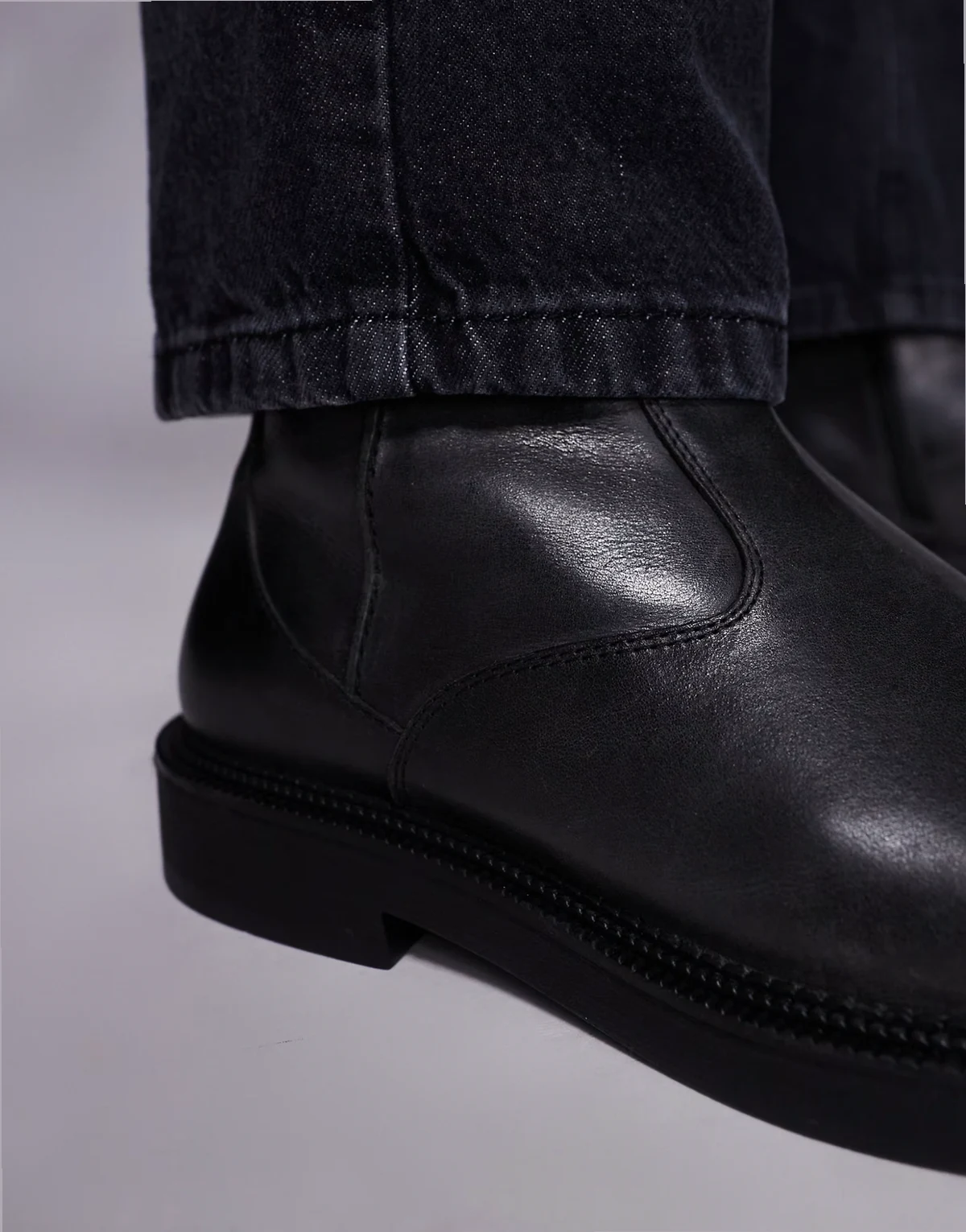ASOS DESIGN – Czarne kowbojskie sztyblety z imitacji skóry na obcasach kubańskich ze srebrnymi noskami $84.99 ★★★★★ (1)