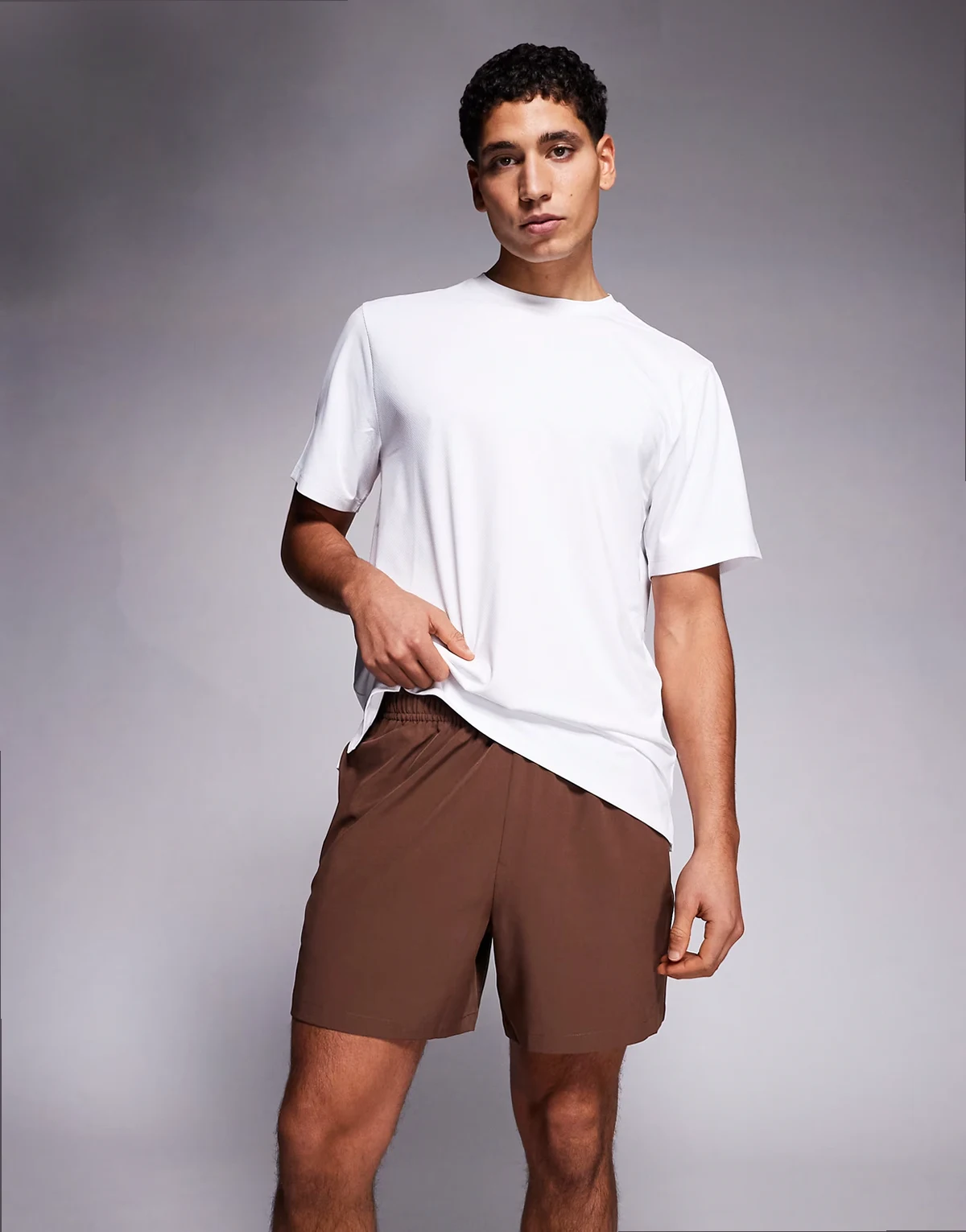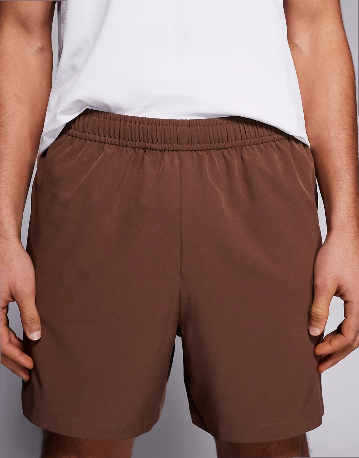 – Icon – Brązowe szybkoschnące szorty treningowe o długości 13 cm z kieszeniami zapinanymi na zamek