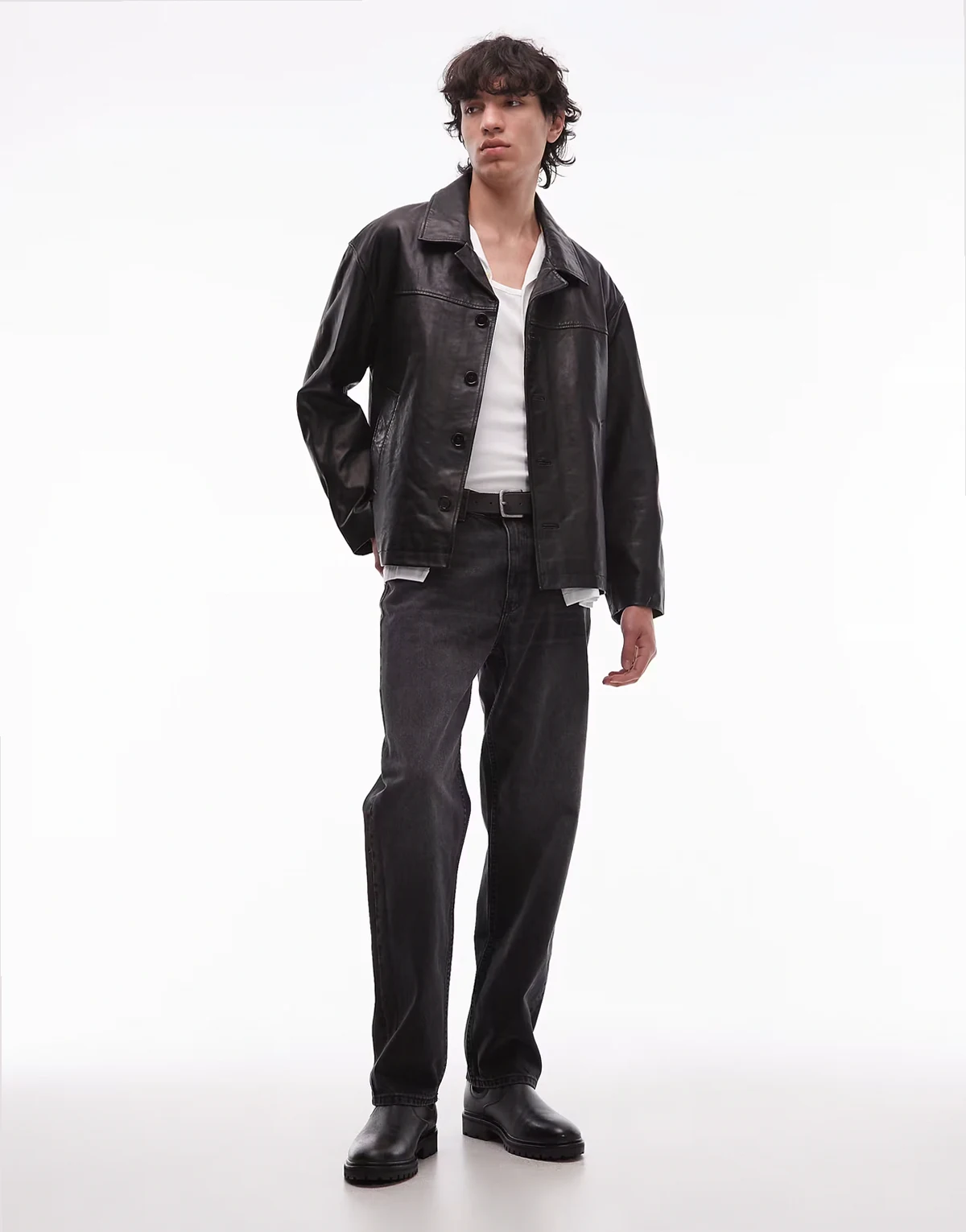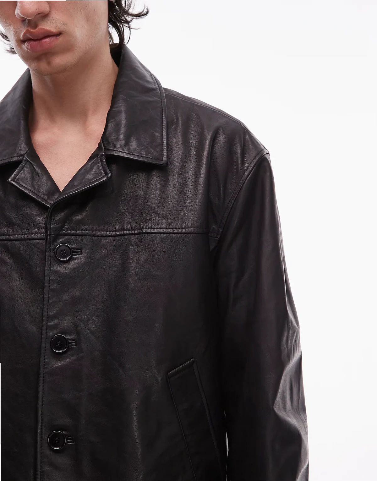 4. – Bradwell – Czarna kurtka skórzana zapinana na guziki