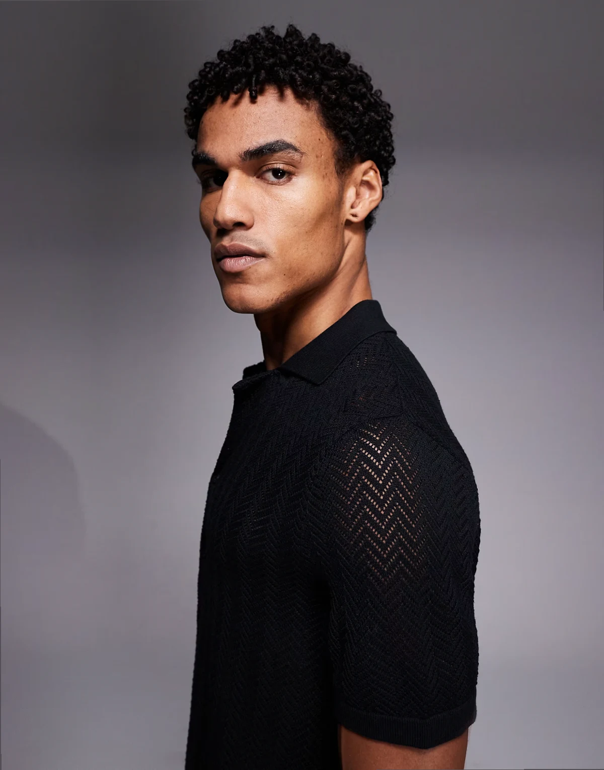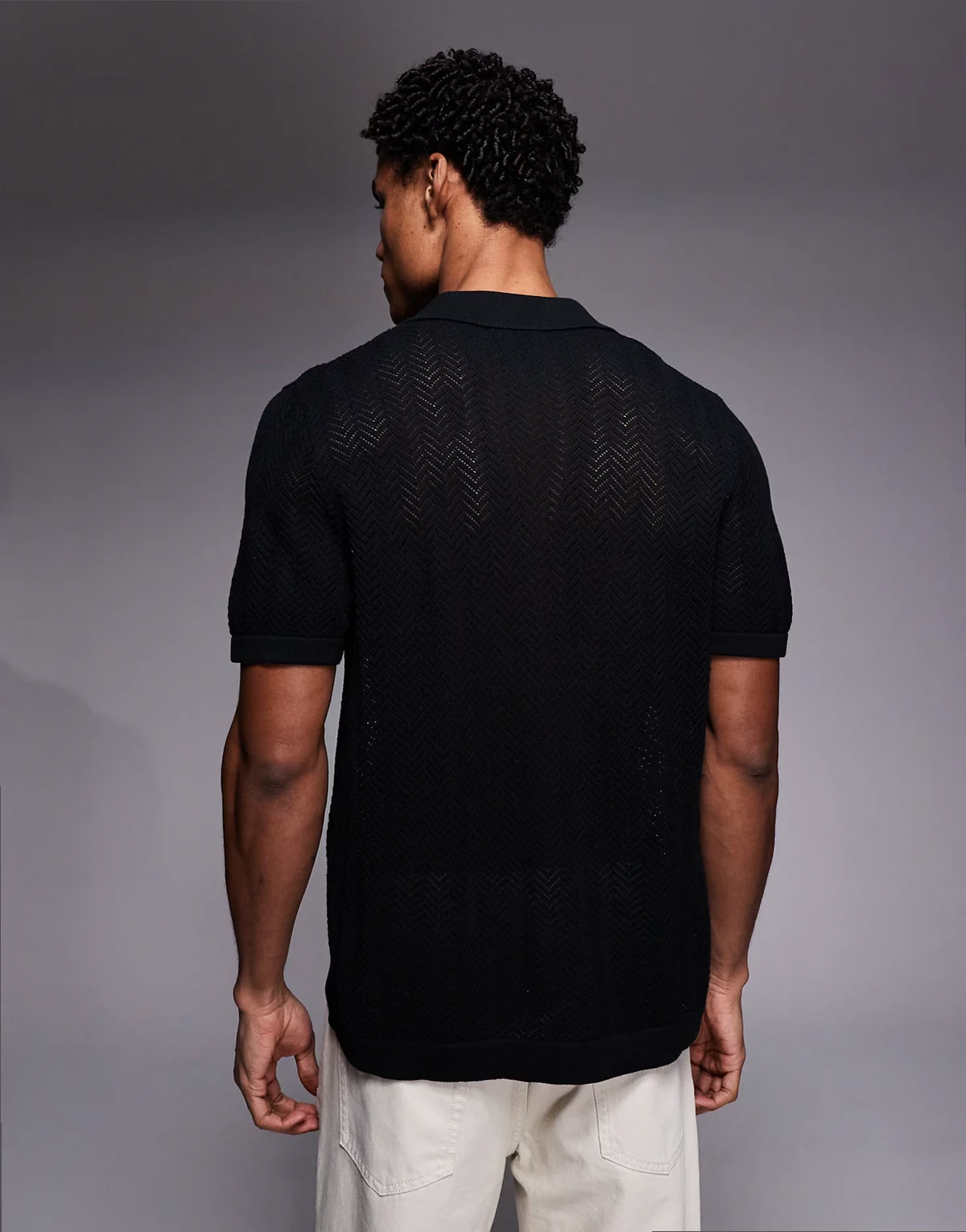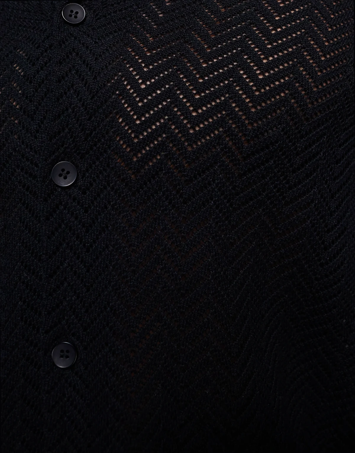 – Czarna szydełkowana koszula z kołnierzykiem kubańskim