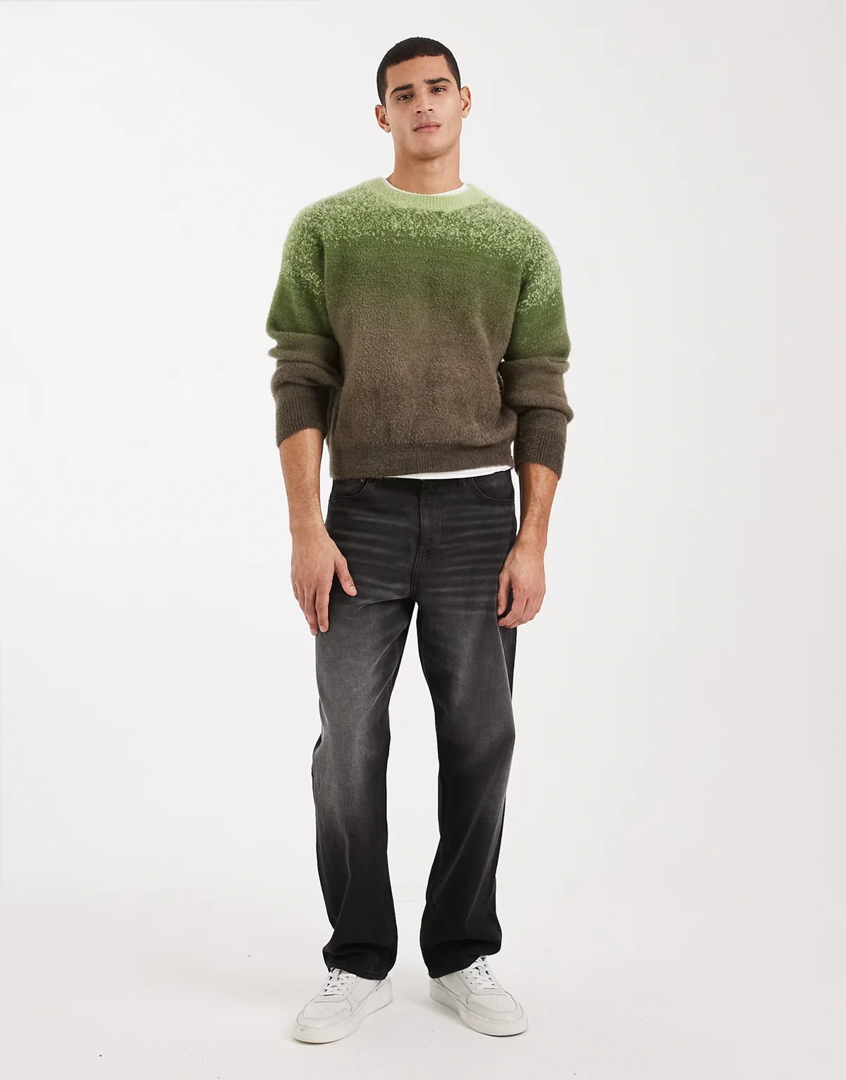 – Sweter o pudełkowym kroju z zielonym efektem ombre
