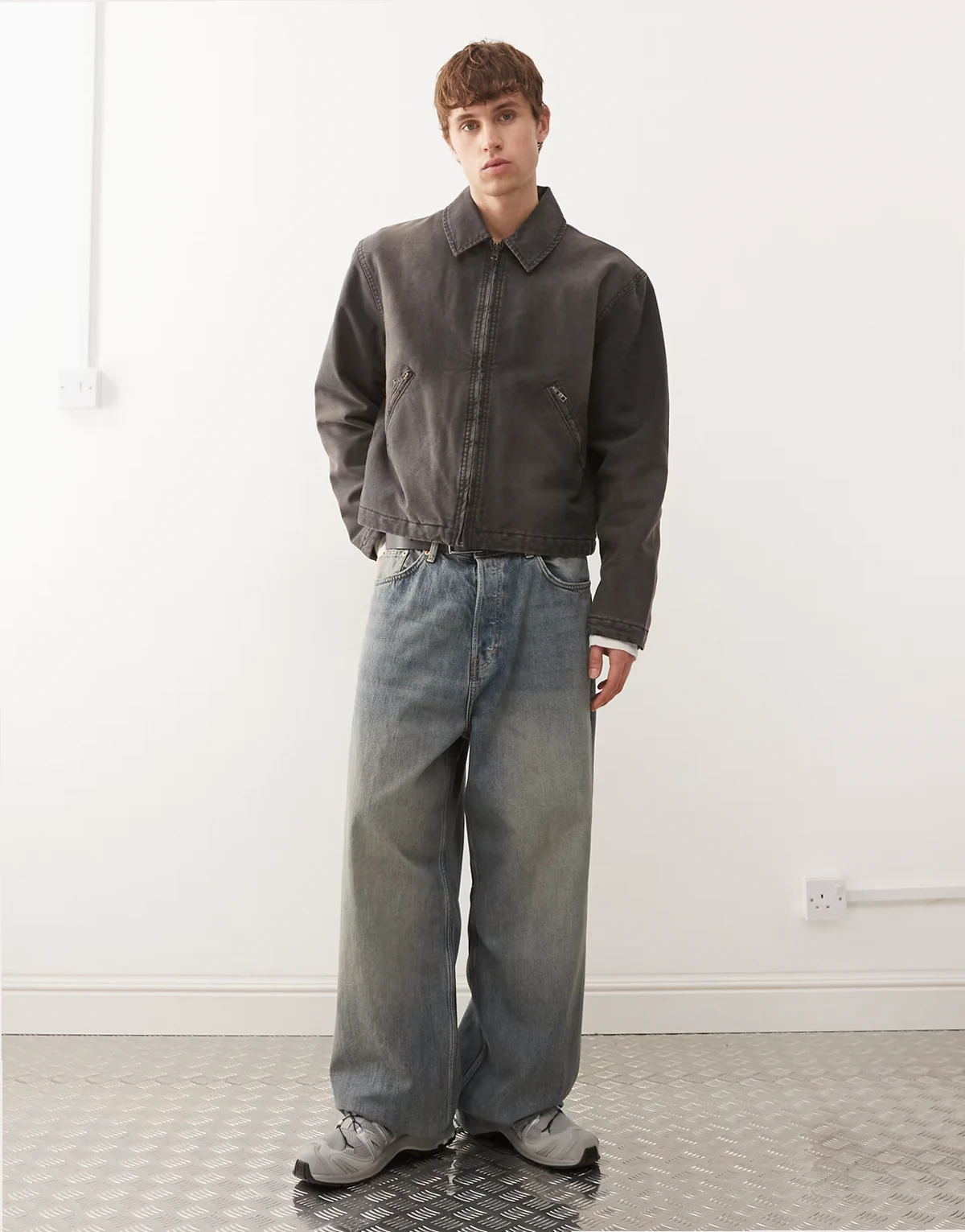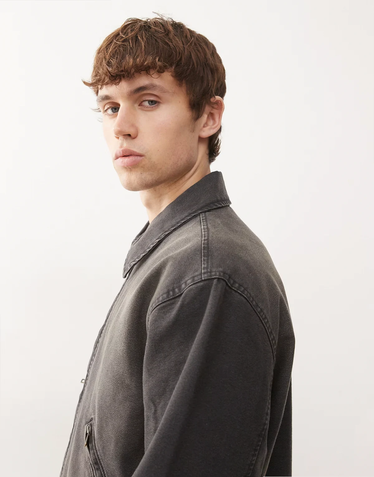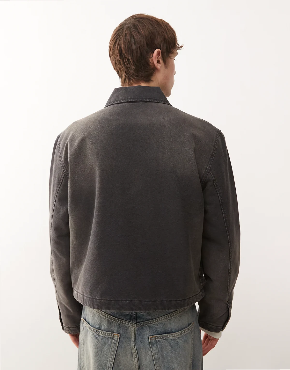 – Czarna płócienna kurtka z efektem sprania o pudełkowym kroju
