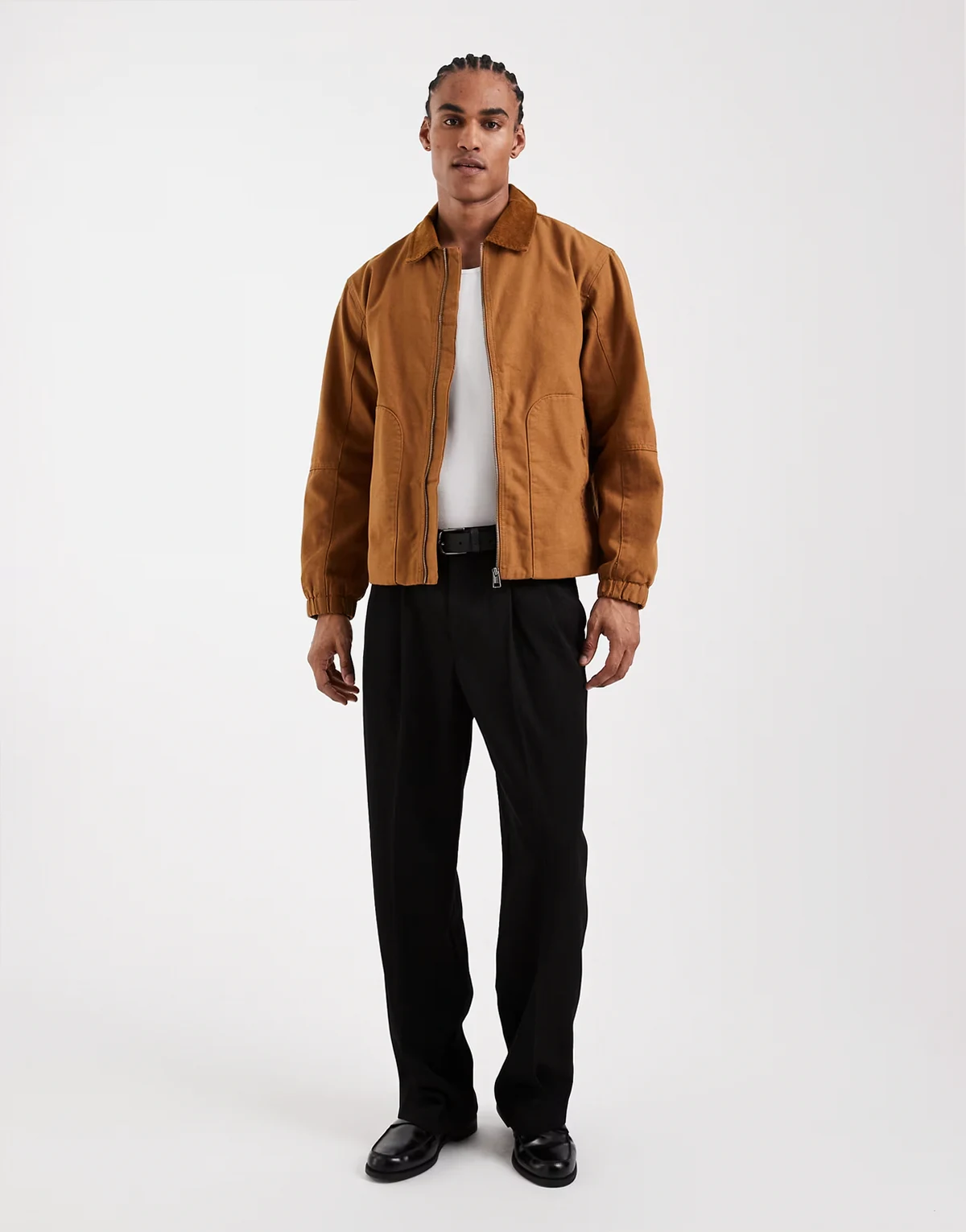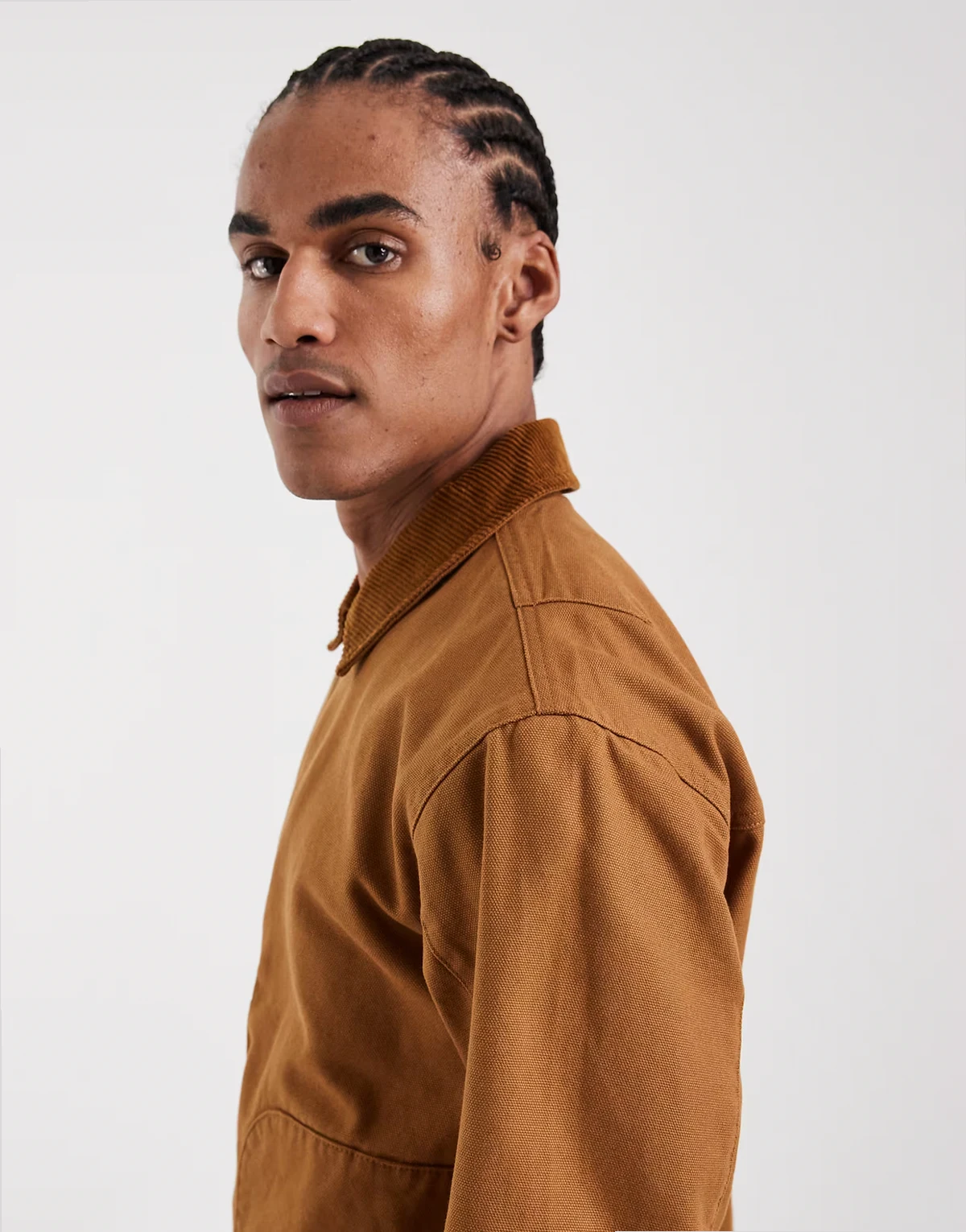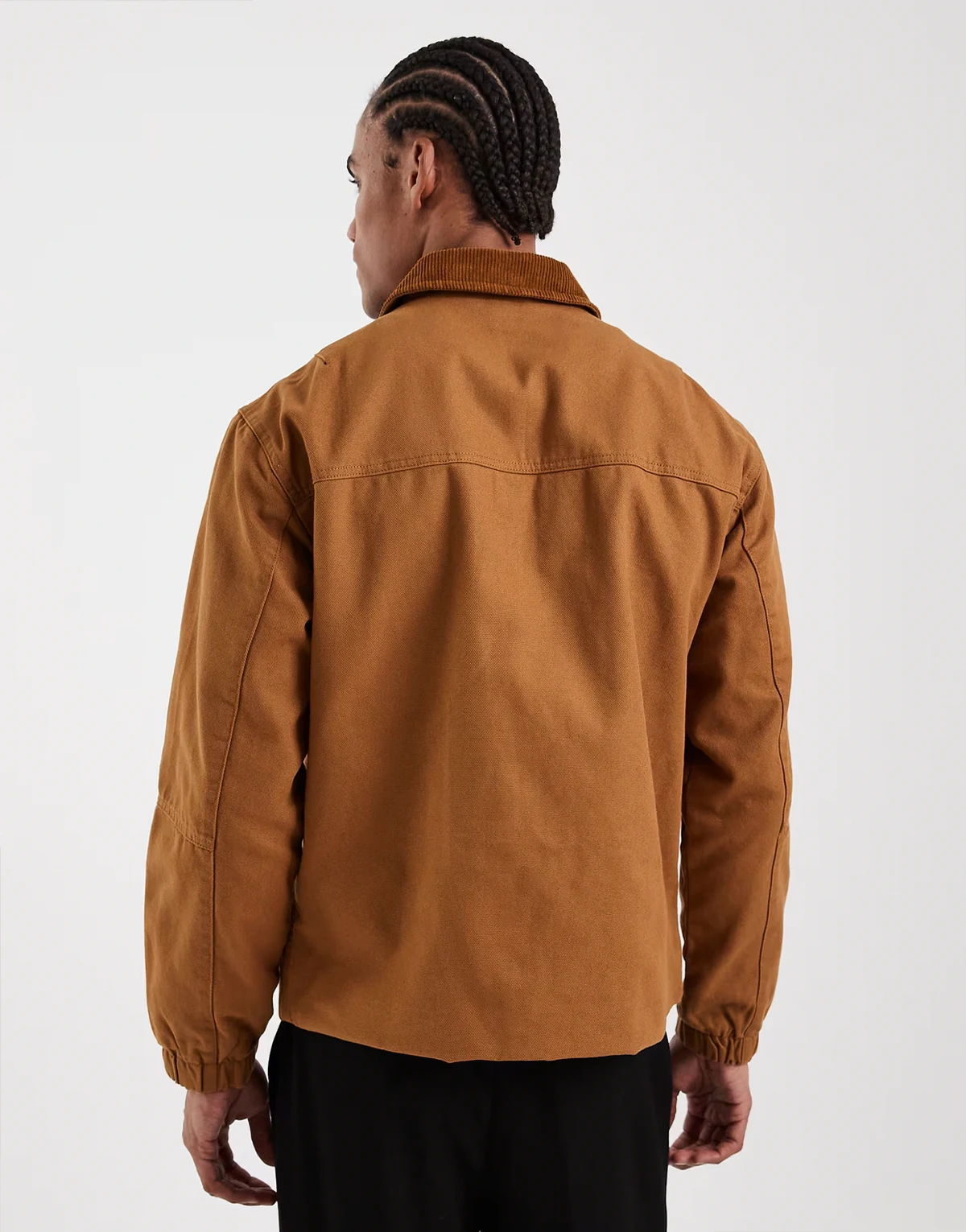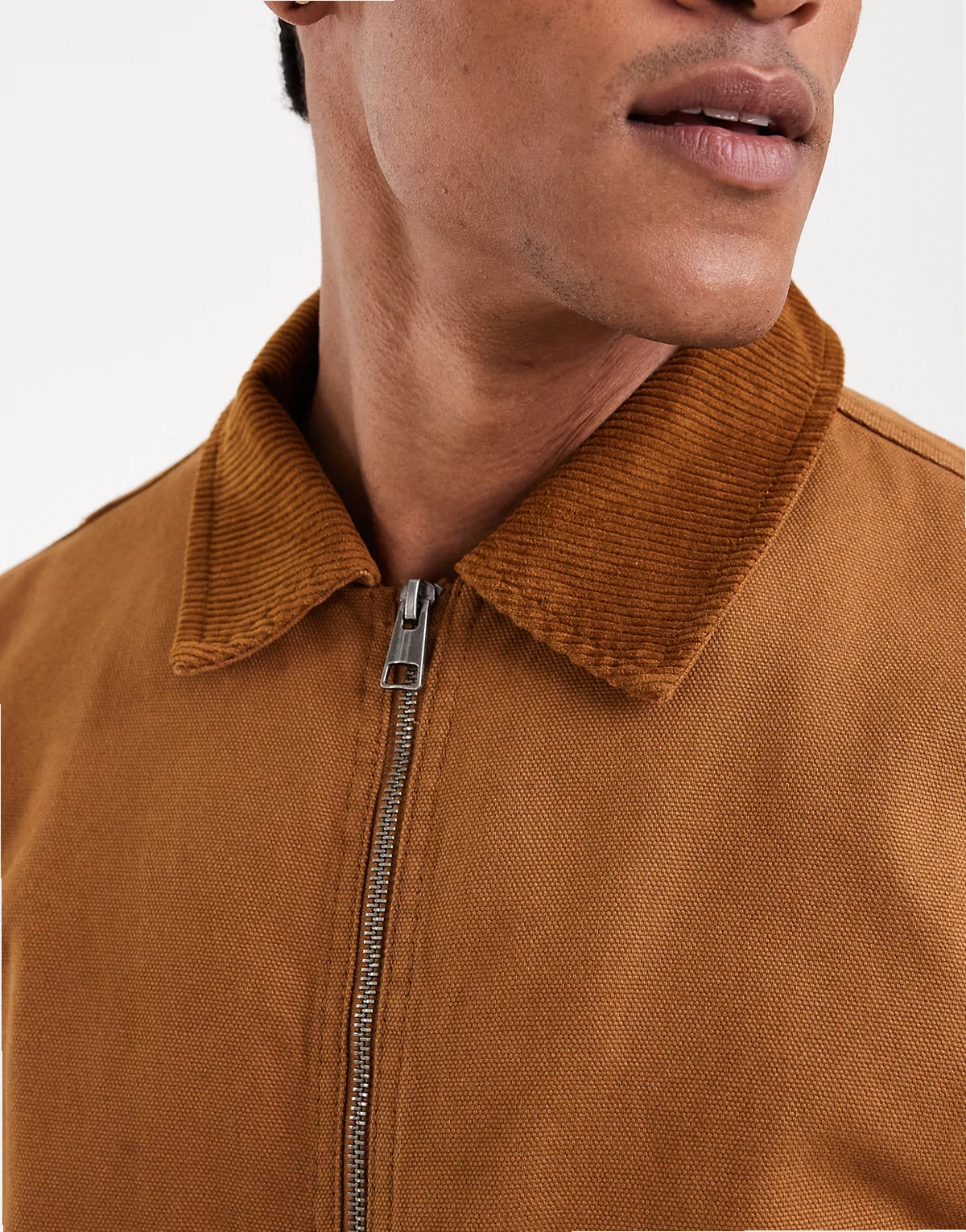 – Jasnobrązowa gruba kurtka oversize typu barn ze sztruksowym kołnierzem