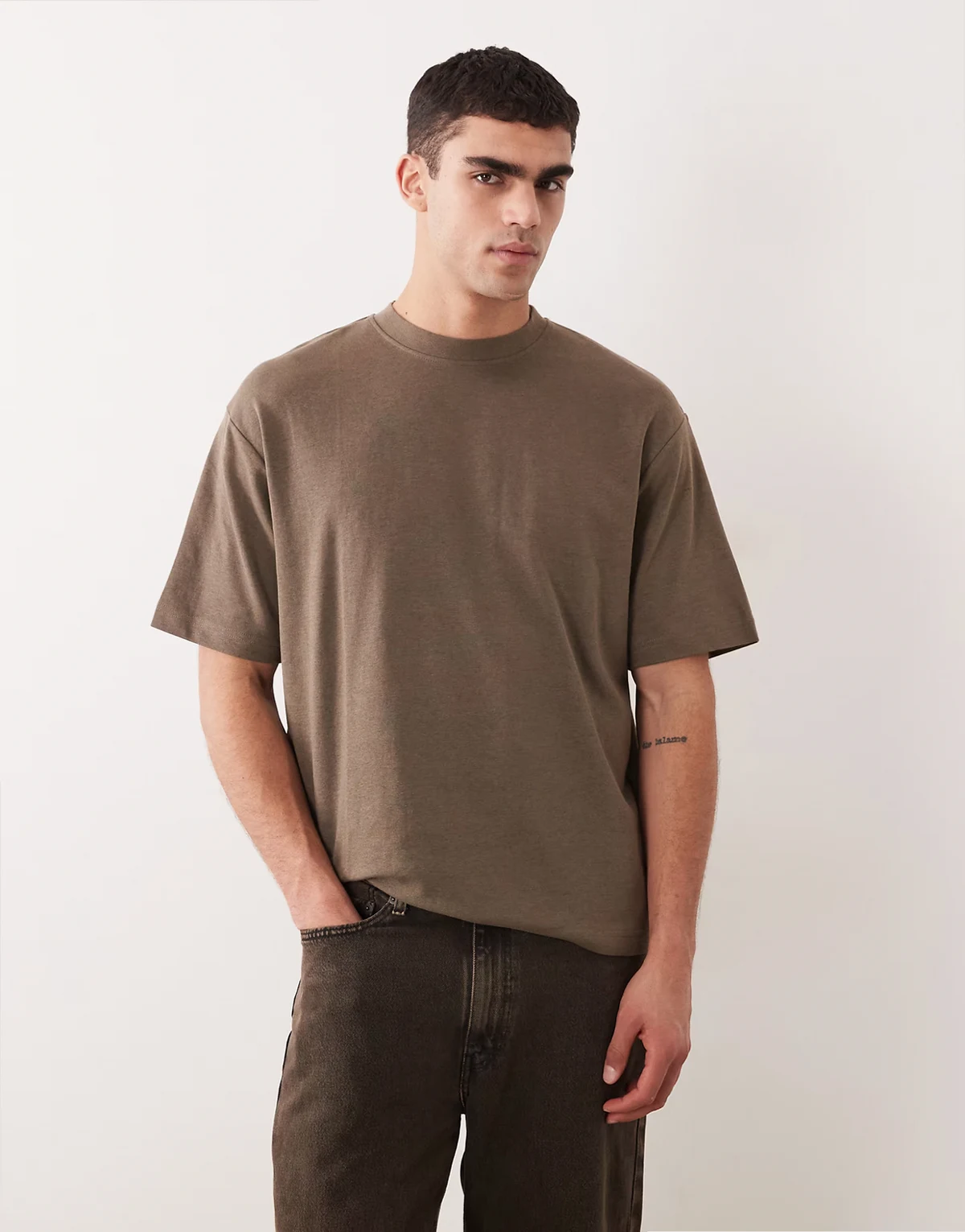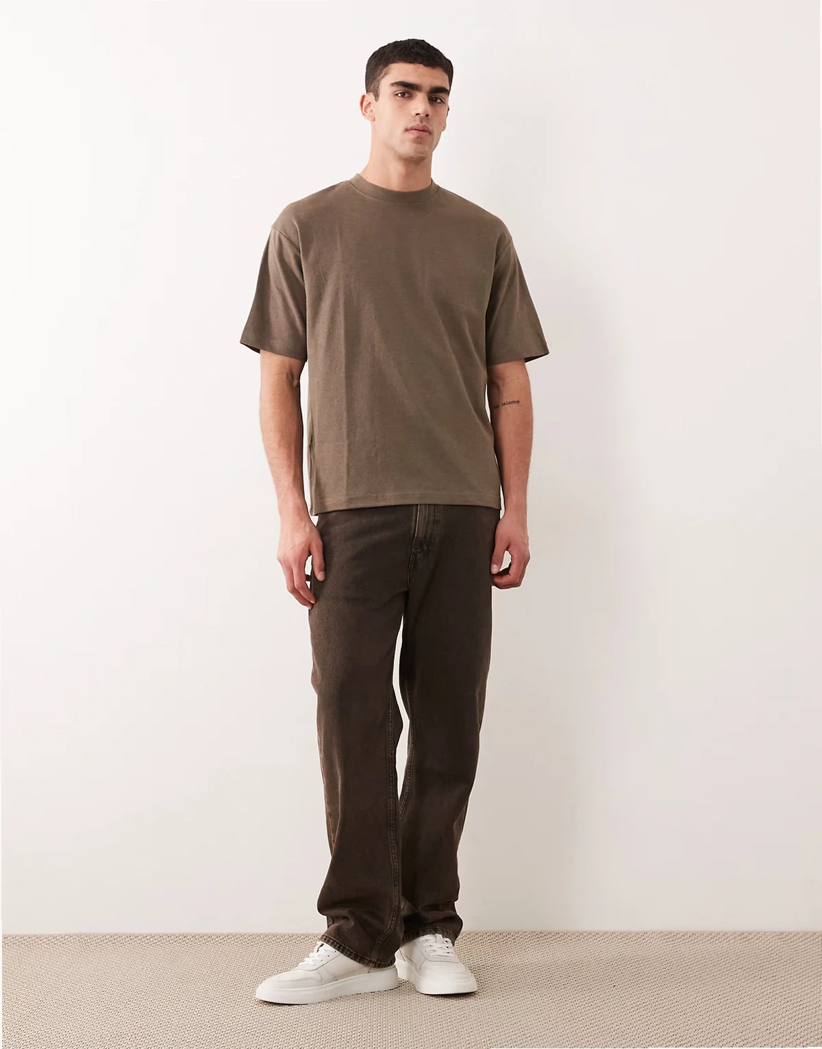 – Czarny T-shirt z krótkimi rękawami i wycięciem w dekolcie