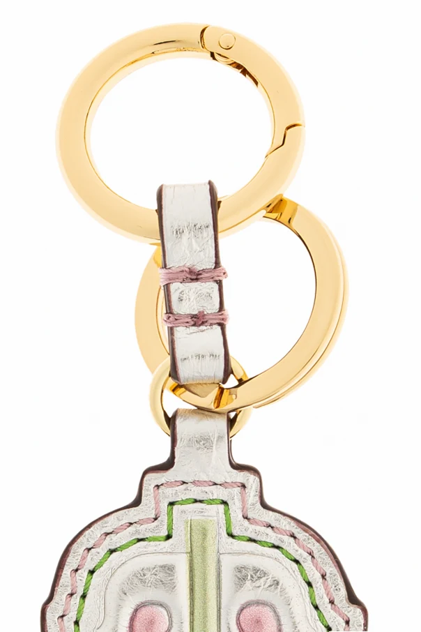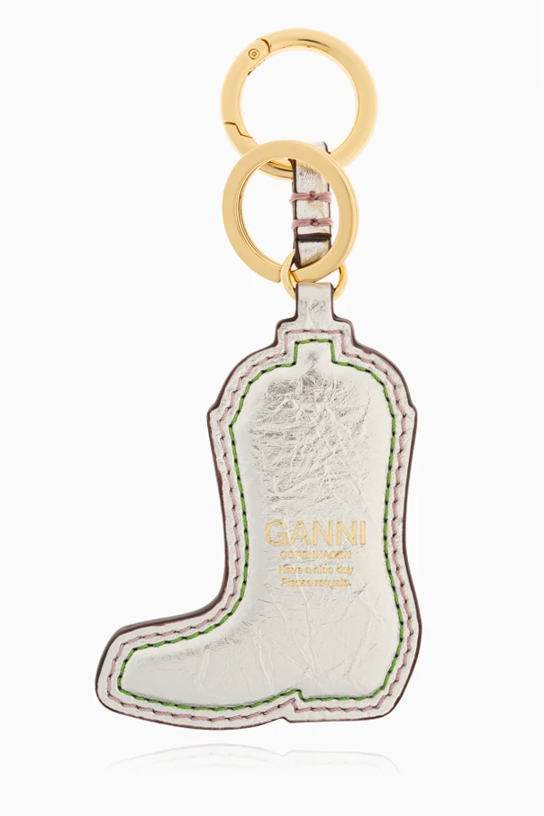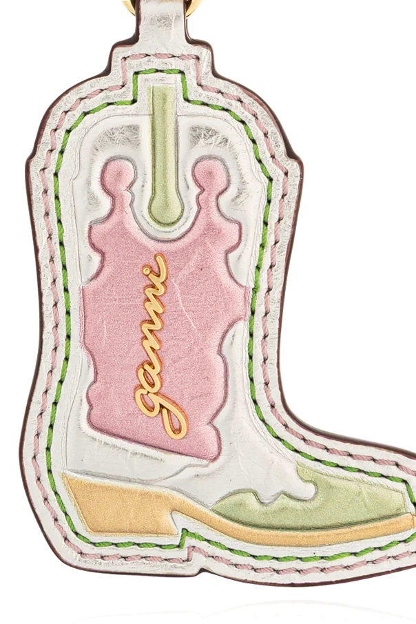 Brelok z zawieszką o motywie buta marki Ganni to niezwykła propozycja dla miłośniczek wyrafinowanych dodatków. Szlachetny kształt stylizowanego kowbojskiego buta , wzbogacony ręcznie wykończonymi detalami cholewki i noska, robi wrażenie już od pierwszego spojrzenia. Harmonijne połączenie pastelowych barw – różu, jasnozieleni, beżu oraz bieli doskonale współgra z wielobarwnymi przeszyciami, nadając przedmiotowi niepowtarzalny multikolorowy charakter .