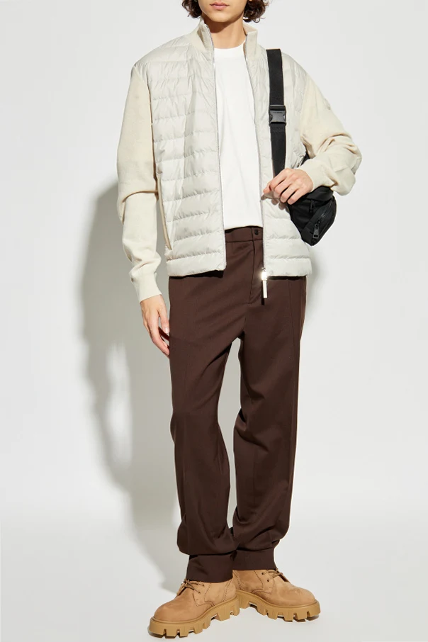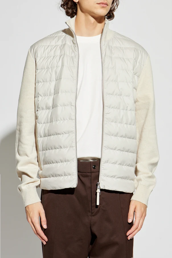 Kardigan z puchową wstawką marki Moncler to esencja wysmakowanej elegancji i funkcjonalności, łącząca sportowy szyk z wyrafinowaną prostotą. Klasyczny fason sięgający bioder został subtelnie dopasowany oraz wzbogacony elastycznymi ściągaczami, gwarantując perfekcyjne podkreślenie sylwetki i niezrównany komfort noszenia.