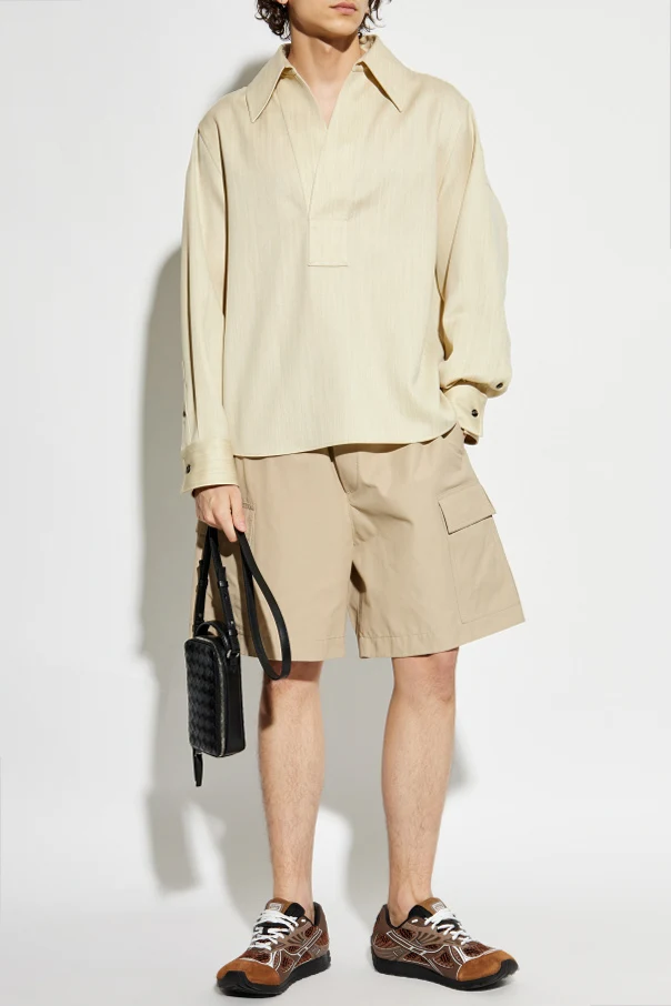 Prezentujemy szorty typu cargo od renomowanej marki Bottega Veneta . Te eleganckie, beżowe szorty to połączenie wyrafinowanego stylu z funkcjonalnością. Doskonale wpisują się w codzienne, casualowe stylizacje, zachowując jednocześnie najwyższe standardy jakości.