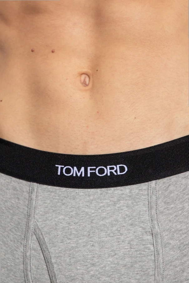 Dwupak bokserek w kolorze szarym Tom Ford. Wykonane z bawełny. W pasie wszyta czarna guma ozdobiona białym, wyszytym logo.