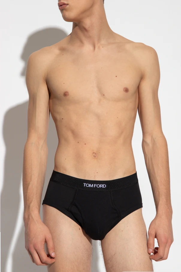 Dwupak slipów w kolorze czarnym Tom Ford. Wykonane z bawełny. W pasie wszyta czarna guma ozdobiona białym, wyszytym logo.