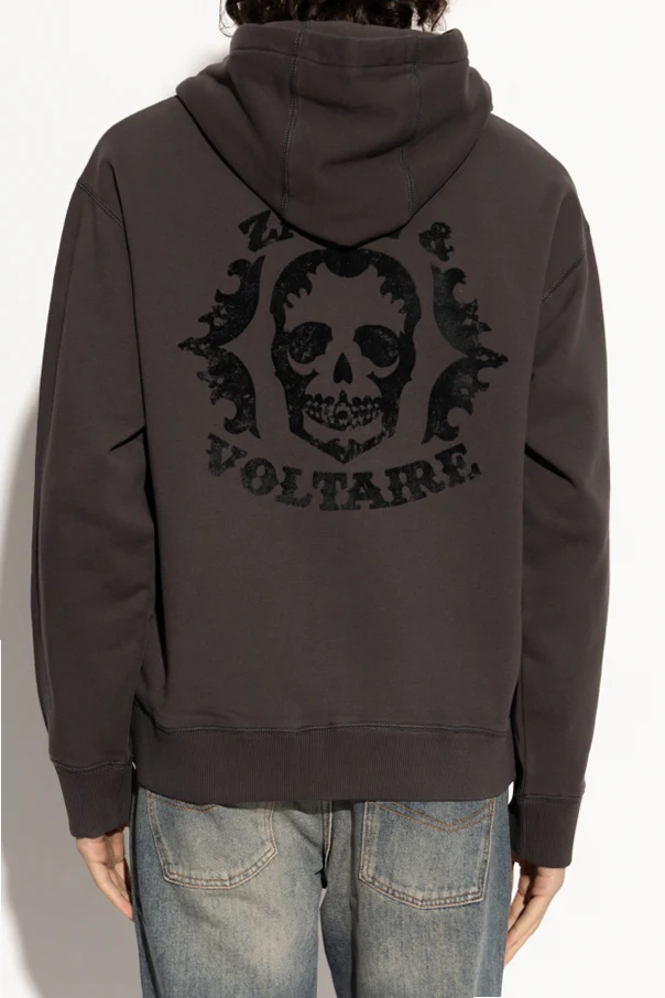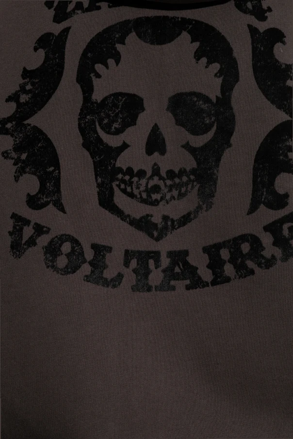 Efektowny nadruk na plecach w stylu vintage – przedstawiający czaszkę i napis „Voltaire” o artystycznie postarzanym wyglądzie – stanowi wyrazisty akcent i unikatowy znak twórczości marki inspirowanej paryskim szykiem oraz brytyjską swobodą.
