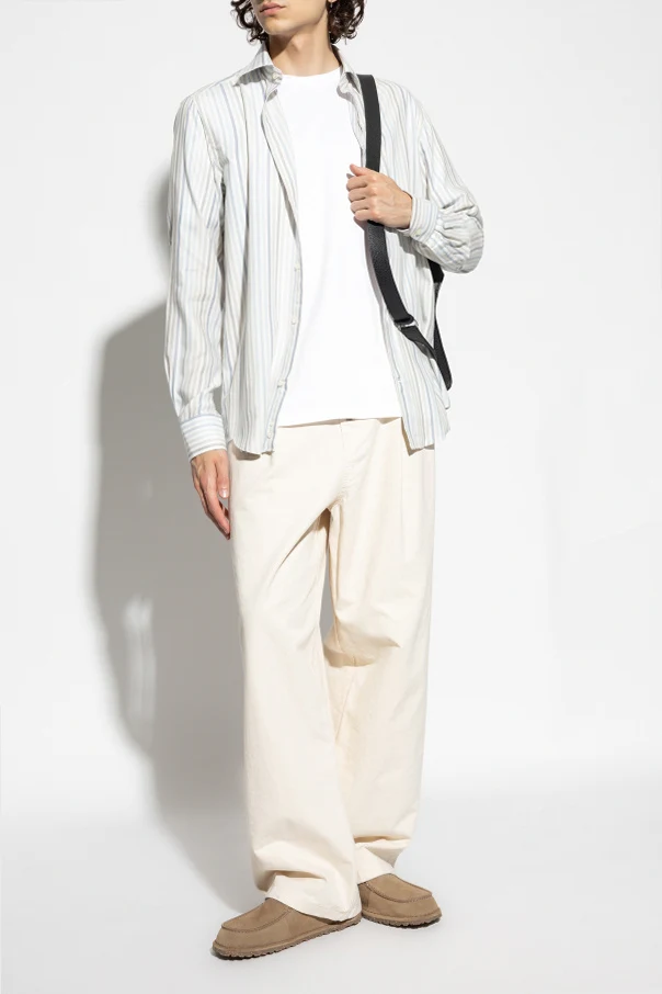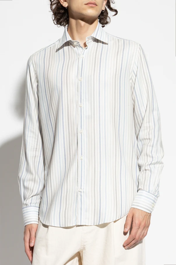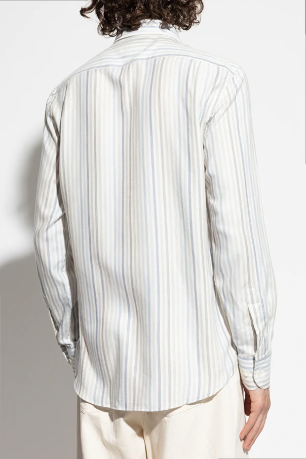 Koszula ze wzorem w prążki marki Paul & Shark ukazuje prawdziwą sztukę krawiectwa w klasycznym wydaniu. Prosty, regularny fason z długim rękawem subtelnie podkreśla sylwetkę, a zaokrąglony dół pozwala na swobodę stylizacji – zarówno w wersji formalnej, jak i casualowej. Wzór w pionowe prążki łączy odcienie niebieskiego, szarości oraz jasnego beżu na kremowym tle, co nadaje całości nowoczesnej wyrafinowanej elegancji.