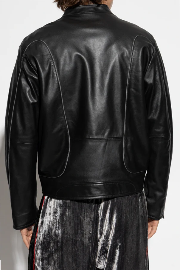 Kurtka skórzana L-KRIXY marki Diesel to kwintesencja nowoczesnego minimalizmu i wyrafinowanego stylu. Jej czarna, gładka skóra najwyższej jakości zachwyca subtelnym połyskiem, a prosty fason z delikatnie luźną sylwetką oraz długością sięgającą do bioder nadają jej ponadczasowej elegancji. Obniżona linia ramion i dopasowany rękaw z precyzyjnie wyeksponowanym szwem podkreślają unikalny, męski charakter tej wyjątkowej kurtki.