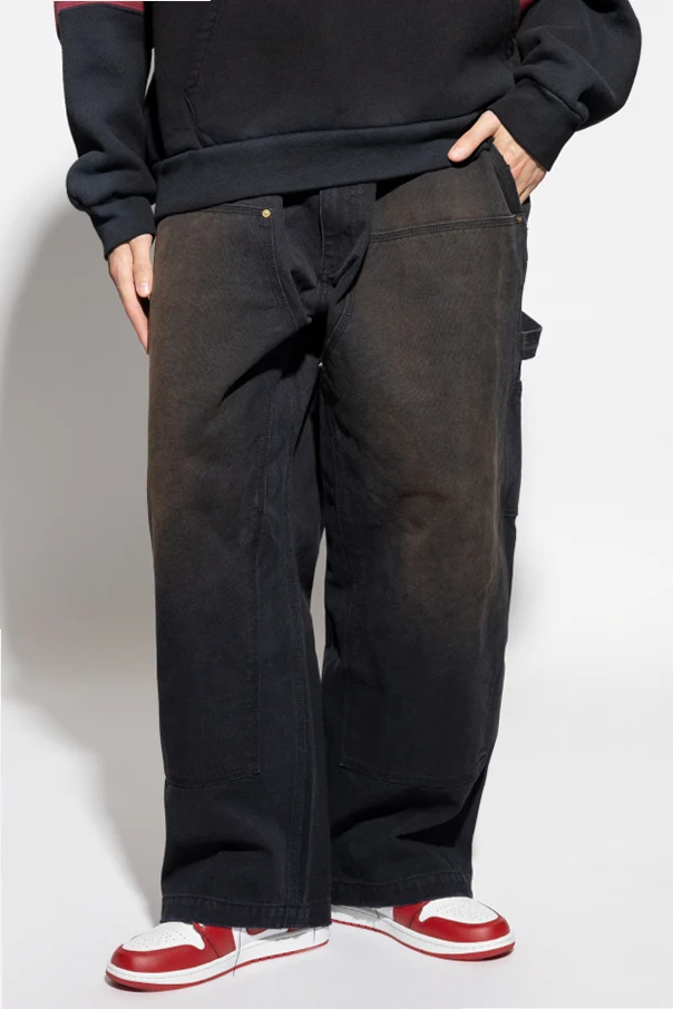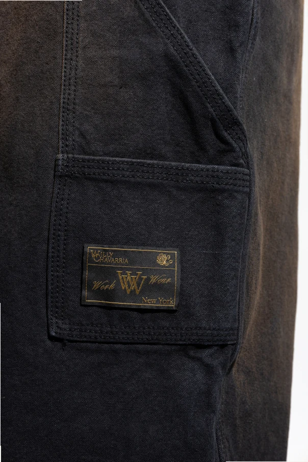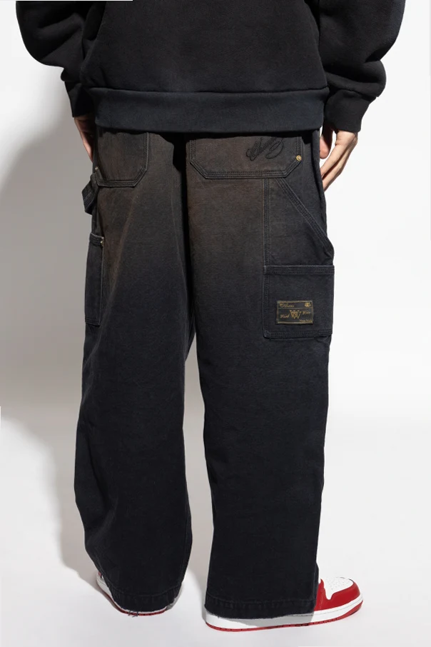 Jeansy z szerokimi nogawkami projektu Willy Chavarria to niebanalne połączenie wyrafinowanej prostoty i ulicznego charakteru. Wykonane z klasycznego, grubego denimu, zachwycają czarnym kolorem wzbogaconym efektem postarzenia, podkreślonym subtelnymi przetarciami w okolicach ud oraz kolan. Szerokie, proste nogawki o surowych, nieobszytych brzegach z frędzlami nadają całości ponadczasową swobodę oraz odrobinę awangardy.