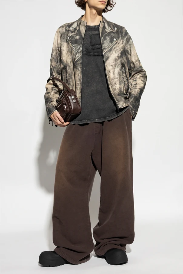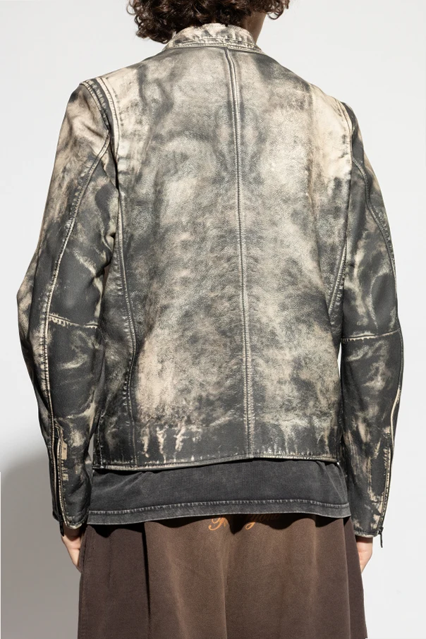 Skórzana kurtka L-TAD-PRINT marki Diesel to wyraz ponadczasowej elegancji i wyrafinowania. Prezentuje klasyczny, prosty fason z subtelnie dopasowanym krojem, podkreślonym wyrazistą linią ramion. Uwagę przykuwa artystyczny wzór typu „washed” w odcieniach beżu i czerni, który nadaje całości charakterystycznego postarzenia, podkreślając indywidualność noszącego.