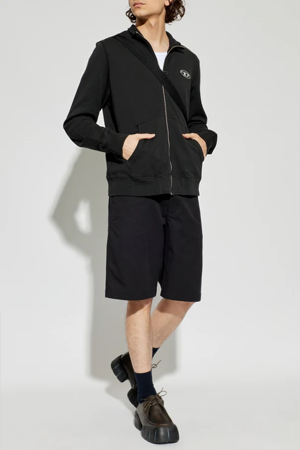 Bluza S-GINN-ZIP-IOD marki Diesel to esencja współczesnej elegancji w sportowym wydaniu. Zachwyca głęboką, jednolitą czernią , która nadaje całości wyjątkową szlachetność. Starannie dobrana, wysokogatunkowa bawełniana dzianina o subtelnie matowej fakturze zapewnia komfort użytkowania i przyjemność dotyku. Klasyczna forma typu zip-up dopełniona została długim, metalicznym zamkiem, prowadzącym aż do delikatnej stójki bomber, podkreślającej charakter bluzy.