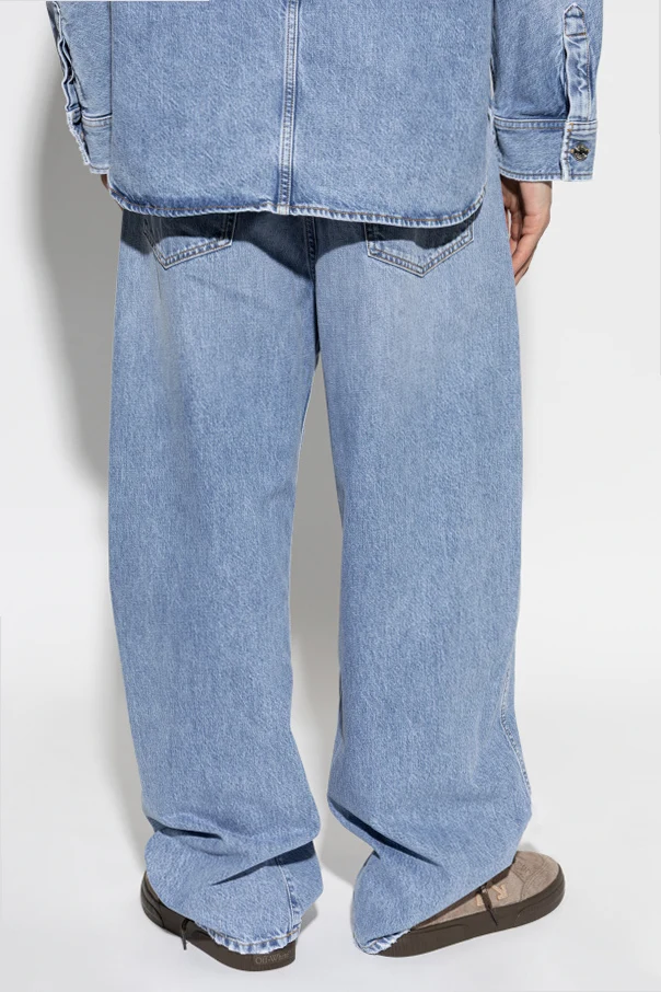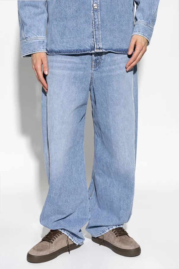Jeansy z szerokimi nogawkami marki Givenchy to synonim nowoczesnej elegancji inspirowanej awangardowym duchem paryskiego domu mody. Starannie wykonane z wyrazistego, sztywnego denimu o widocznym splocie, prezentują się w urzekającym, jasnoniebieskim odcieniu, zachwycając szlachetną prostotą oraz minimalistycznym wykończeniem bez ozdobnych aplikacji.