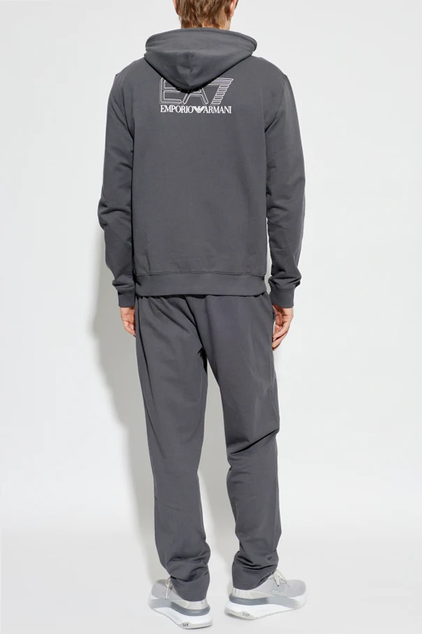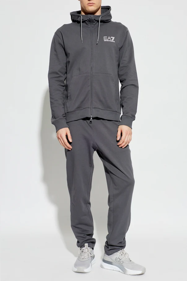 Komplet dresowy: bluza i spodnie marki EA7 Emporio Armani to kwintesencja sportowej elegancji w szarym kolorze. Precyzyjnie skrojony, z regularną, lekko dopasowaną sylwetką, zapewnia niezrównaną swobodę oraz komfort podczas codziennego użytkowania. Jednolite, gładkie wykończenie bez zbędnych ozdób podkreśla szlachetny minimalizm, który doskonale wpisuje się w nowoczesne trendy.