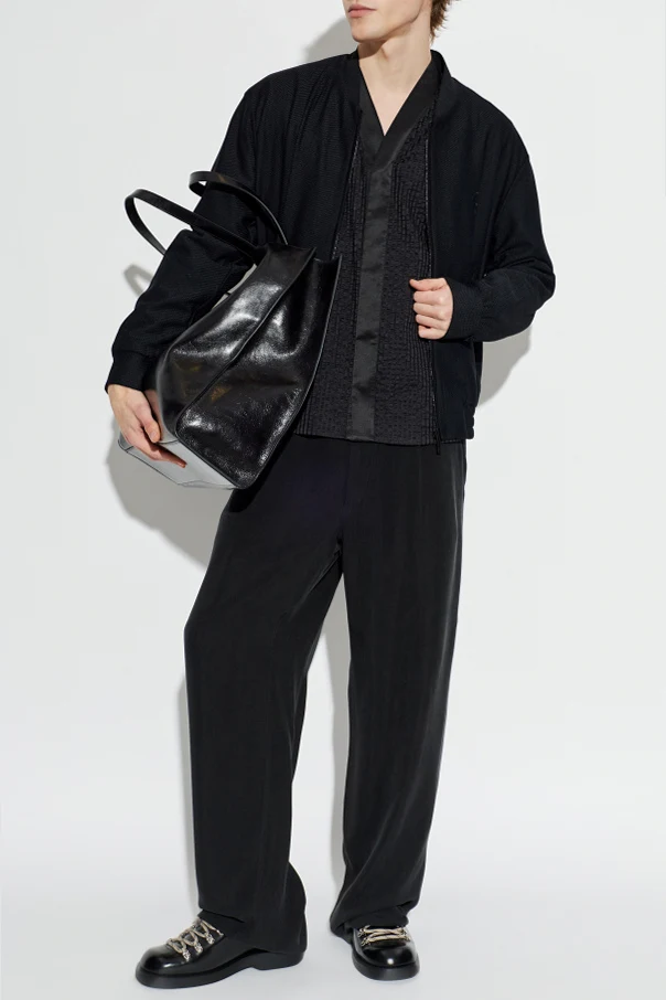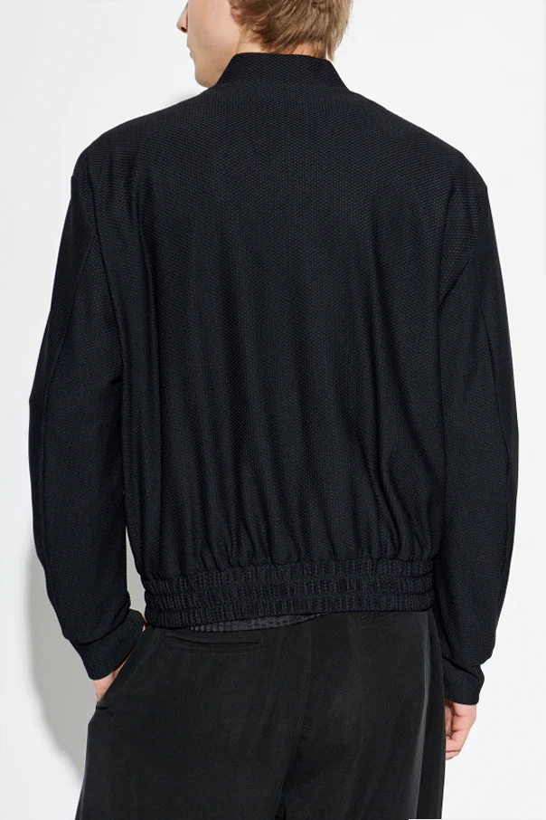 Wykonana z strukturalnego, fakturowanego materiału , kurtka posiada lekko błyszczącą powierzchnię, która zachwyca głębią i szlachetnością. Czarny kolor nadaje jej uniwersalny, wyrafinowany charakter, doskonale współgrając z minimalistycznym wzornictwem oraz subtelnym monogramem na lewej piersi. Dwie boczne kieszenie na zamek zapewniają funkcjonalność, podkreślając zarazem harmonię formy.