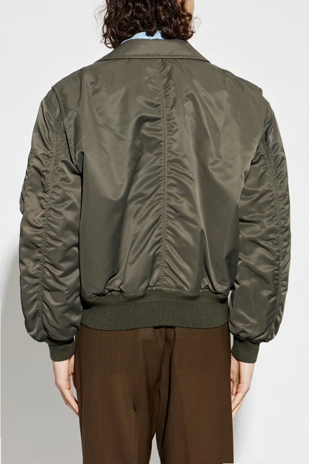 Kurtka typu bomber od Toma Forda olśniewa wyrafinowaną prostotą oraz staraniem o każdy detal. Jej lekko oversize’owy fason z zaokrąglonymi ramionami i szerokim kołnierzem wyróżnia się wyrafinowaną linią, będącą synonimem nowoczesnej elegancji. Kurtka zachwyca jednolitym, zielonym kolorem oraz subtelnie połyskującą satynową strukturą – wyrazem użycia najwyższej klasy poliamidu na zewnątrz i miękkiej bawełny wewnątrz.