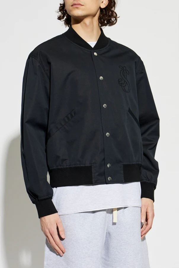 Kurtka typu bomber z logo Jil Sander to wyrafinowana propozycja dla mężczyzn ceniących minimalizm i kunszt wykonania. Klasyczny, lekko oversize’owy fason z luźno opadającymi rękawami oraz ściągaczami nadaje sylwetce nowoczesnego charakteru, jednocześnie zachowując wygodę użytkowania.