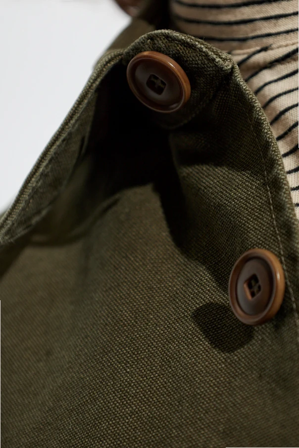 Starannie wyselekcjonowana bawełniana tkanina o wyrazistej fakturze zachwyca szlachetną sztywnością, gwarantując trwałość oraz nieprzeciętny komfort noszenia. Charakterystyczny kołnierzyk koszulowy, zapięcie na pięć brązowych guzików z wyczuwalną fakturą oraz trzy funkcjonalne, naszywane kieszenie, czynią kurtkę zarówno praktyczną, jak i wyrafinowaną.