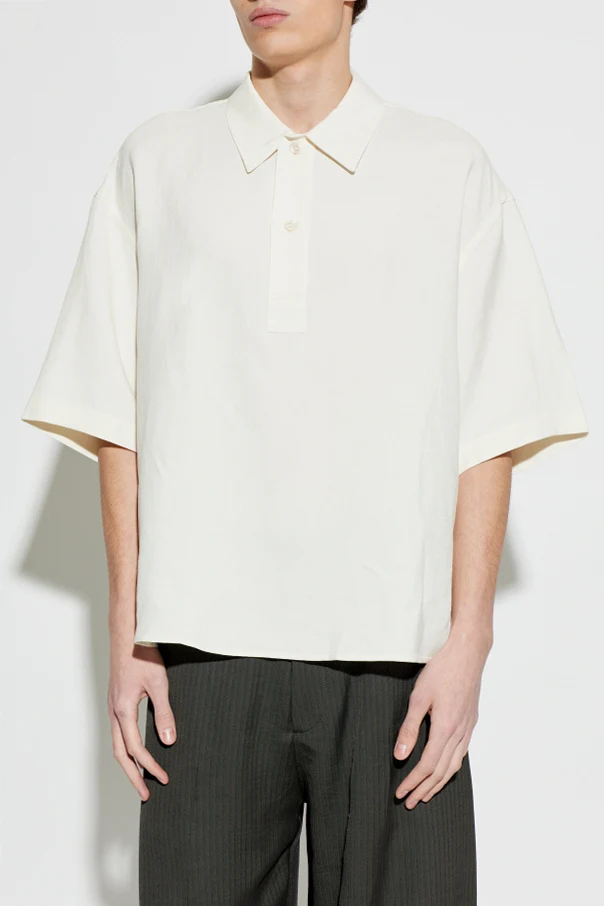 Koszulka polo Lemmer autorstwa Studio Nicholson to wyrafinowana propozycja łącząca ponadczasową elegancję z nowoczesnym duchem miejskiego minimalizmu. Delikatnie oversize’owy krój, podkreślony szerokimi, opadającymi rękawami o długości 3/4 oraz swobodną linią ramion, zapewnia pełen komfort i swobodę noszenia.