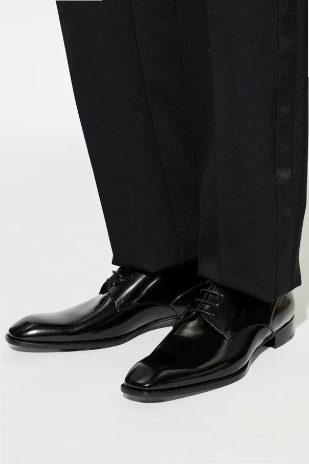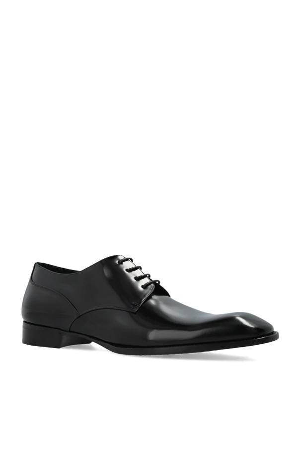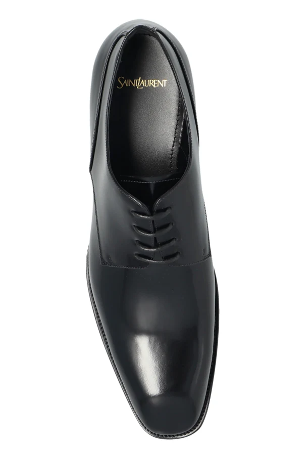 Skórzane buty ‘Stanton’ typu ‘derby’ marki Saint Laurent stanowią wykwintny wybór dla koneserów klasycznej mody męskiej. Ich smukła linia, wyrafinowany, migdałowy nosek oraz niska, prosta podeszwa z subtelnym obcasem zachwycają harmonią proporcji.
