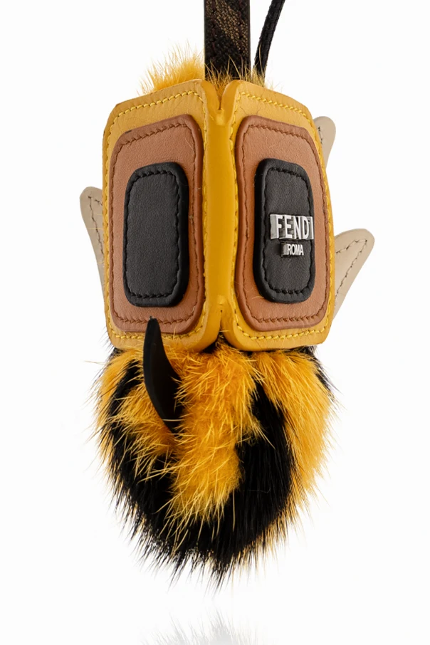 Zawieszka do torby z motywem pszczoły to arcydzieło spod znaku Fendi, stworzone z niezwykłą dbałością o detale. Fantazyjna bryła, łącząca obłe kształty z geometrycznymi, kwadratowymi panelami, urzeka niecodzienną interpretacją pszczelego motywu. Jej żywy, żółty kolor, zestawiony z kontrastującymi czarnymi pasami, przywodzi na myśl witalność natury i niepowtarzalność projektu.