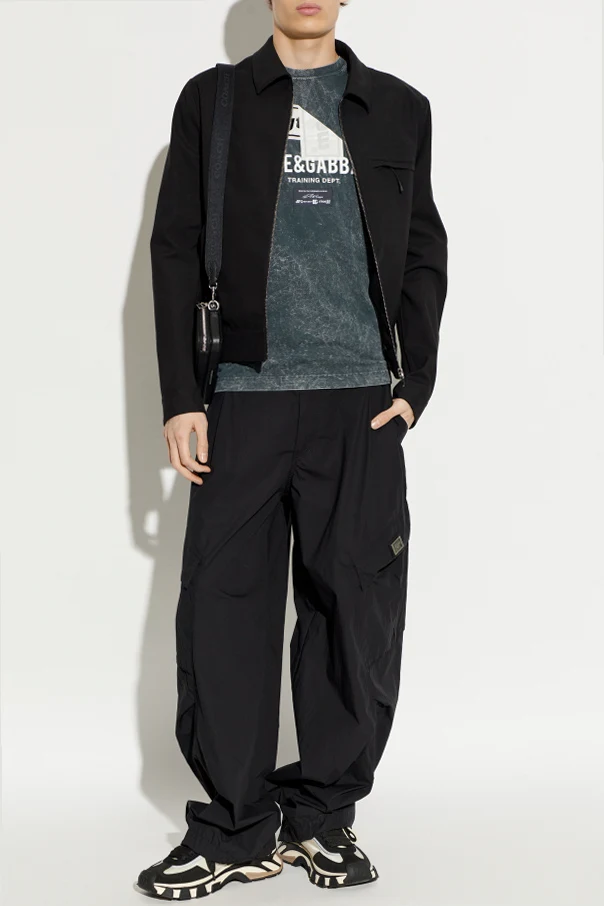 Kurtka przeciwdeszczowa projektu Dolce & Gabbana to kwintesencja nowoczesnej elegancji, stworzona dla koneserów dyskretnego luksusu. Wyróżnia się klasycznym, prostym krojem z subtelnie opuszczonymi ramionami i krótką linią sięgającą do pasa. Całość utrzymana w głębokim, czarnym kolorze, bez nadruków i zdobień, oferuje ponadczasową uniwersalność i szlachetność formy.