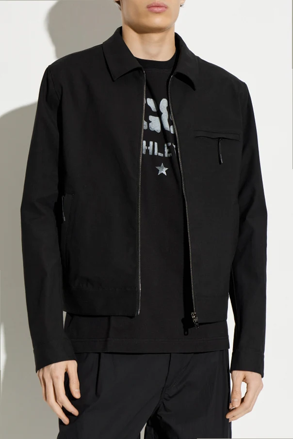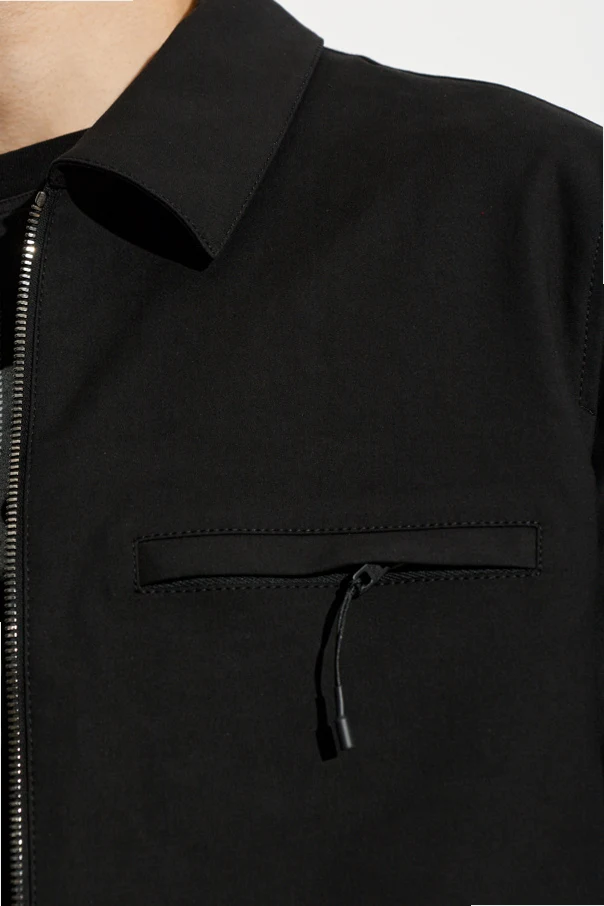 Gładką, matową powierzchnię gwarantuje wyselekcjonowany materiał (bawełna z domieszką elastyczną), doskonale chroniący przed wilgocią. Metalowy zamek błyskawiczny oraz niewielka, zewnętrzna kieszonka na piersi, zamykana na suwak z minimalistycznym uchwytem, dopełniają kompozycji. Model uzupełnia klasyczny kołnierzyk koszulowy oraz praktyczne, boczne kieszenie.